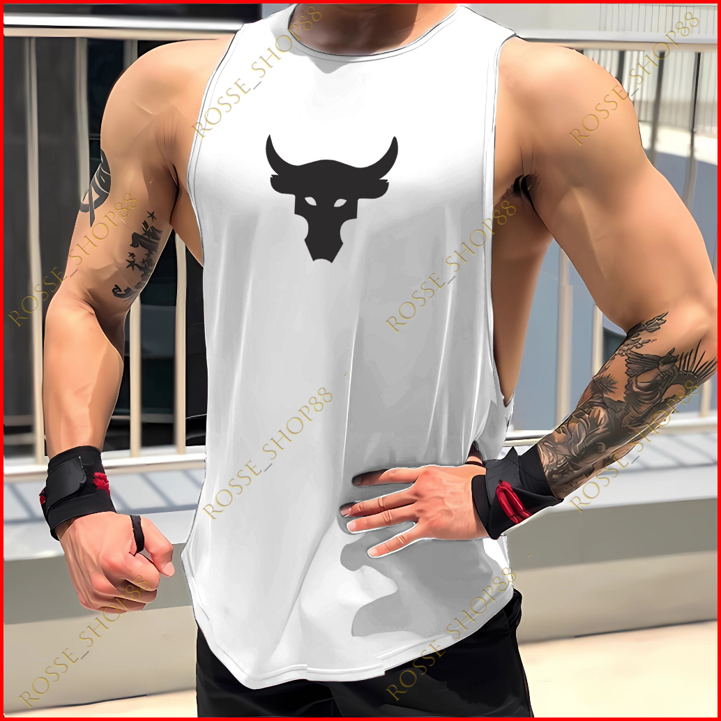 Singlet Low Cut Pria Gym Olahraga Fitness Sport Running Tank Top Motif Bulls