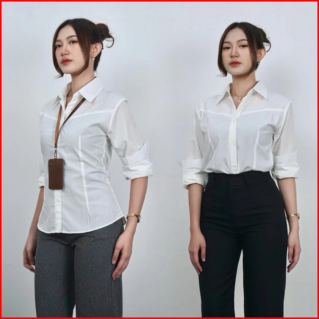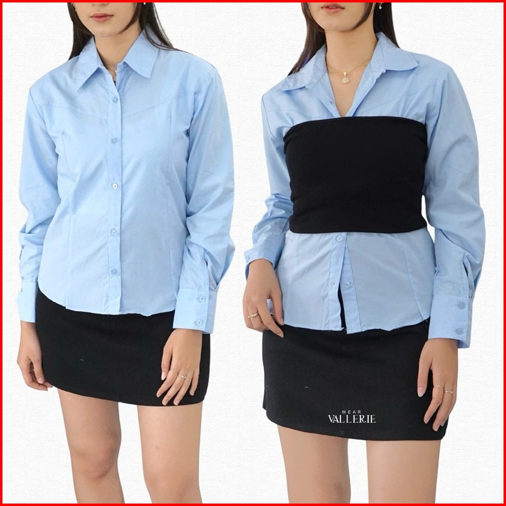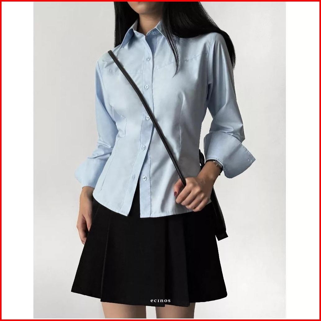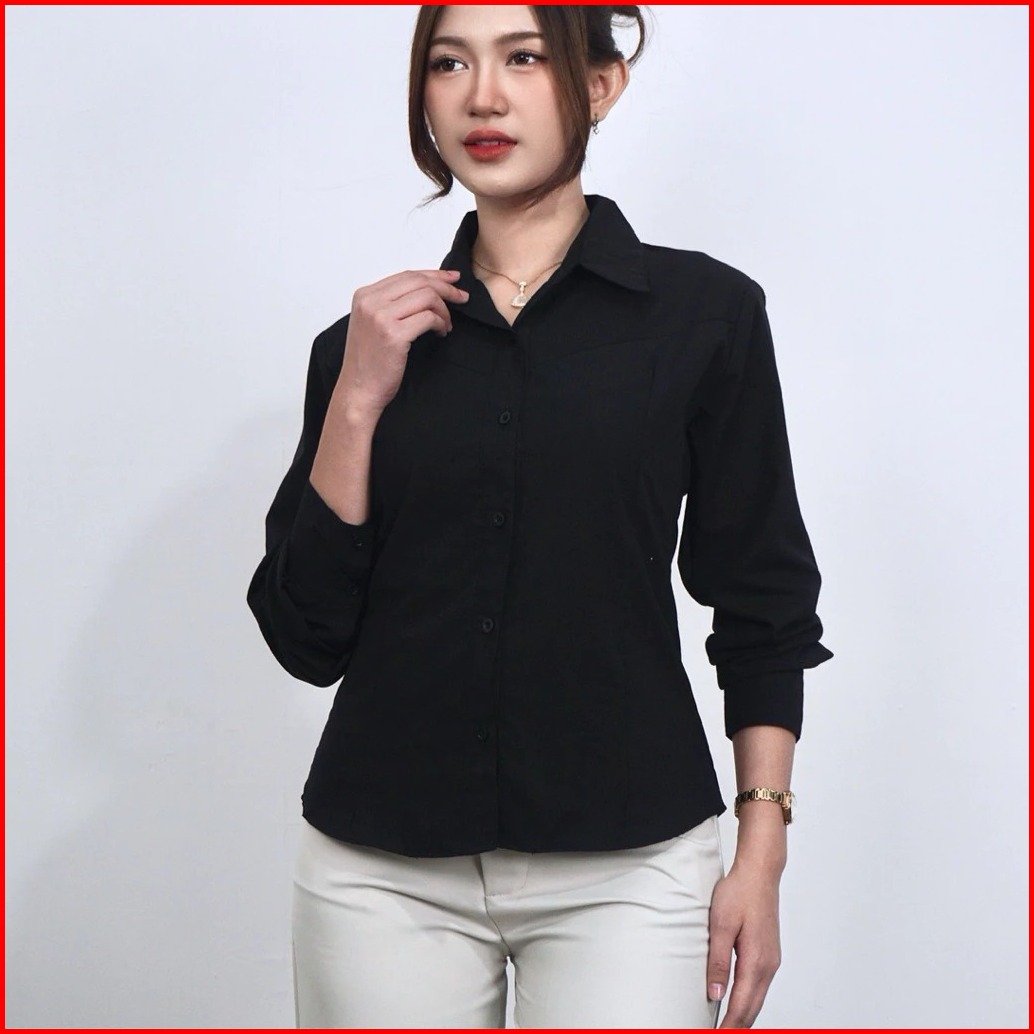 Mf - Lawyer Fitted Shirt Kemeja Wanita Lengan Panjang Slim Polos Atasan Wanita Katun Premium