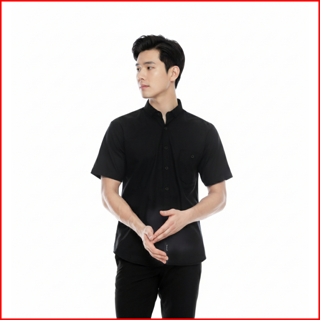 Men S Wear - Short Sleeve Shirts Black Kemeja Polos Pria Lengan Pandek Hitam Casual Slim Fit