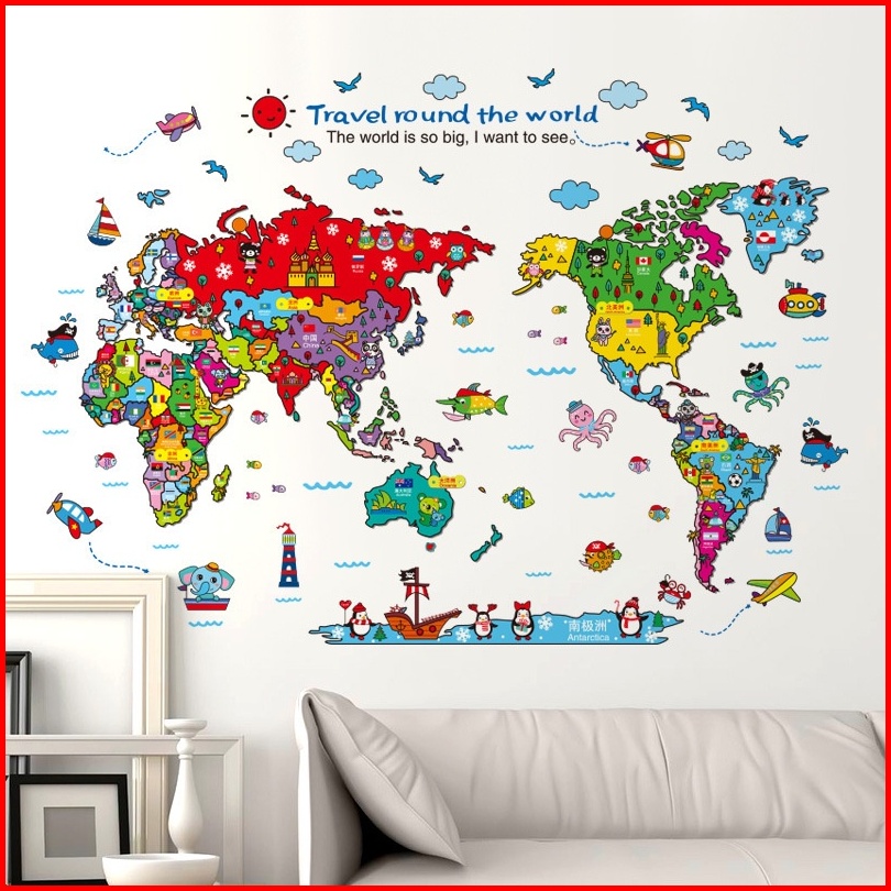 Reliza Wallsticker Wallsticker Map Of The World Peta Dunia Stiker Dinding