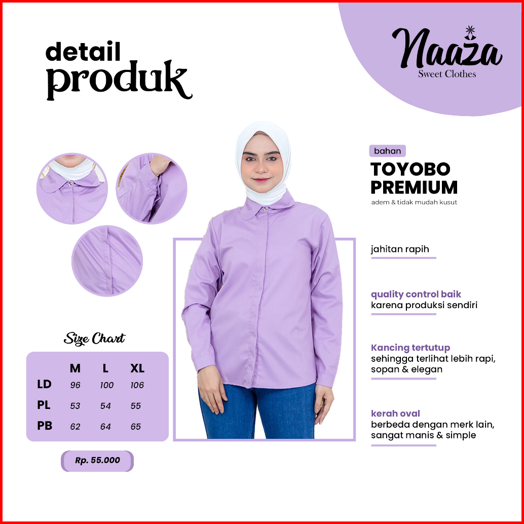 Kemeja Polos Katun Toyobo Wanita Lengan Panjang Kerja