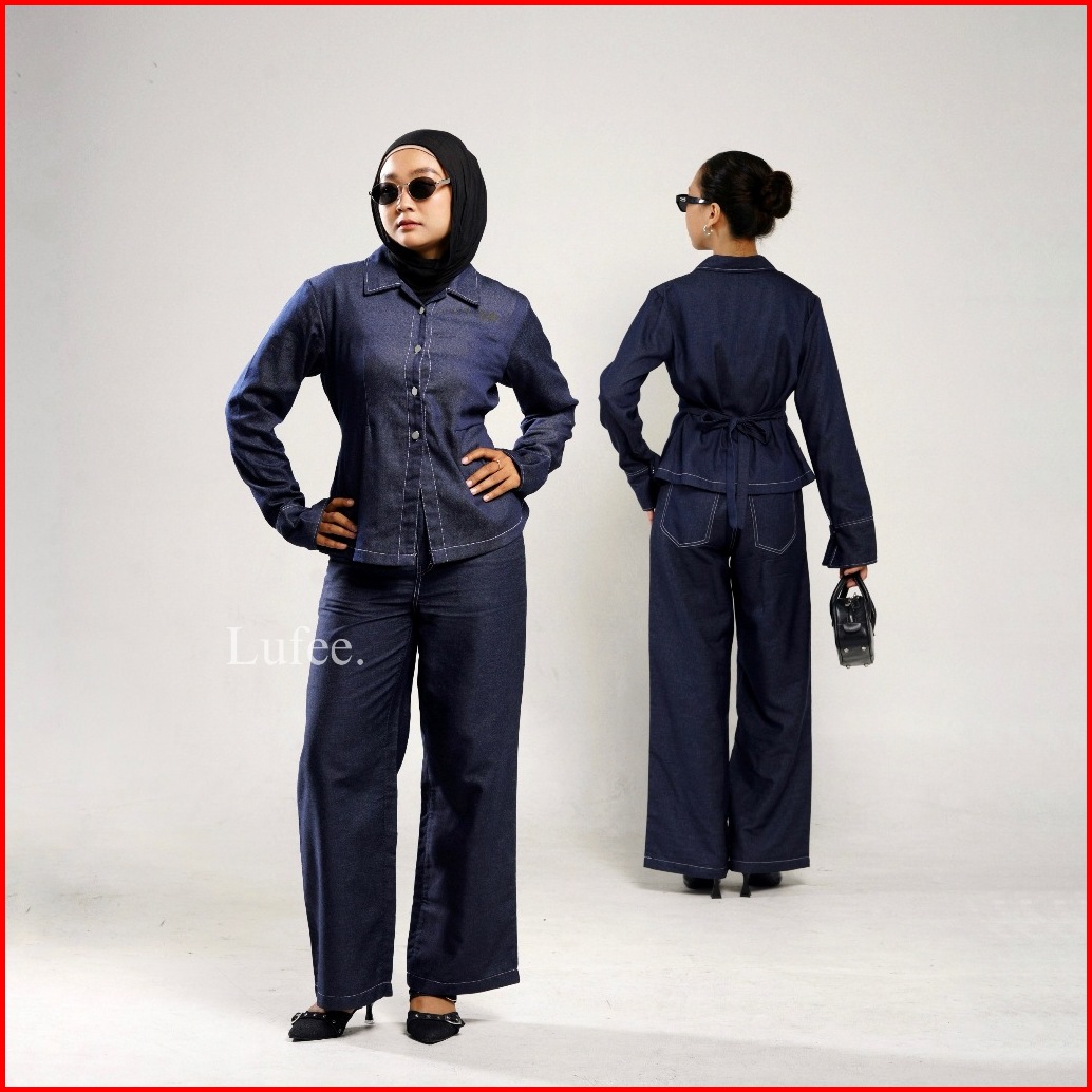 Jeanne Set Denim - One Set Denim Jeans Atasan Dan Bawahan Denim On Denim Denim Shirt Denim Pants
