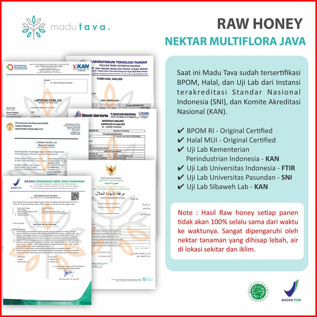 Madu Murni Asli Tava Nektar Multiflora Java 600gr Grade A 100 Alami Pure Natural Raw Honey