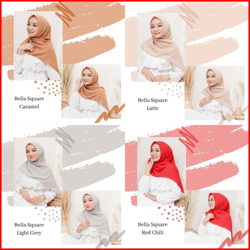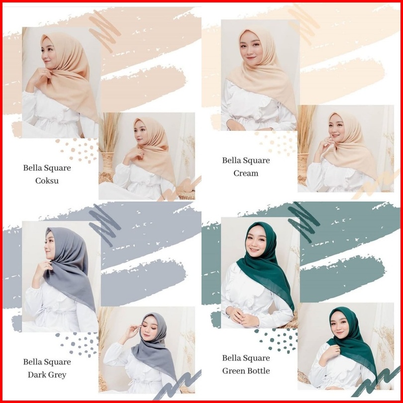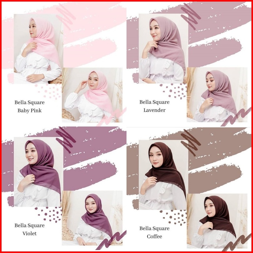 12 Pcs Hijab Bella Square Jilbab Segi Empat Polycotton Premium Jahit Neci Premium
