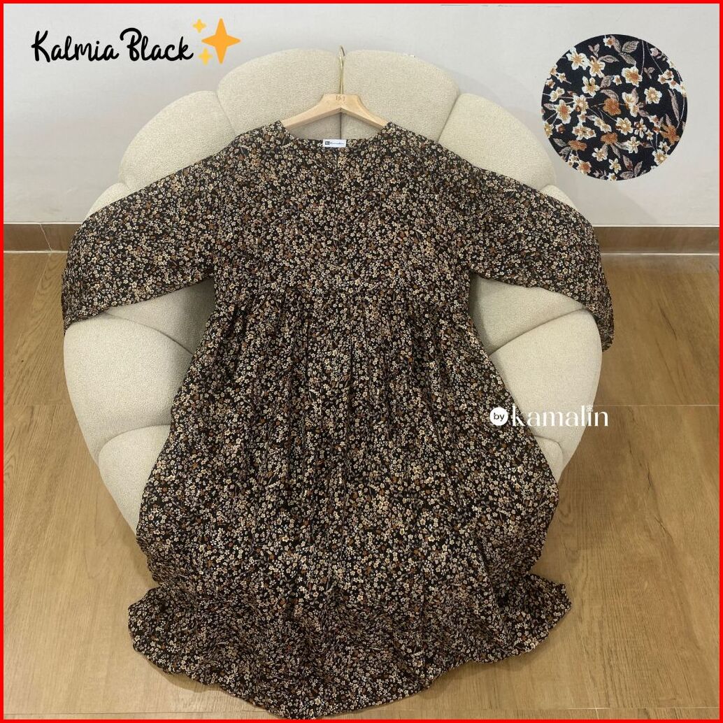Midi Dress Rayon Premium Jumbo Terbaru 2025 Ld 120 130 Kekinian Hijab Motif Kalmia By Kamalin