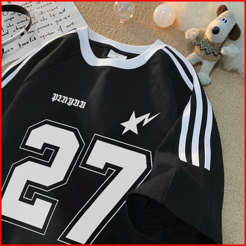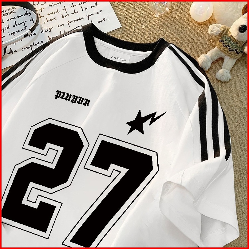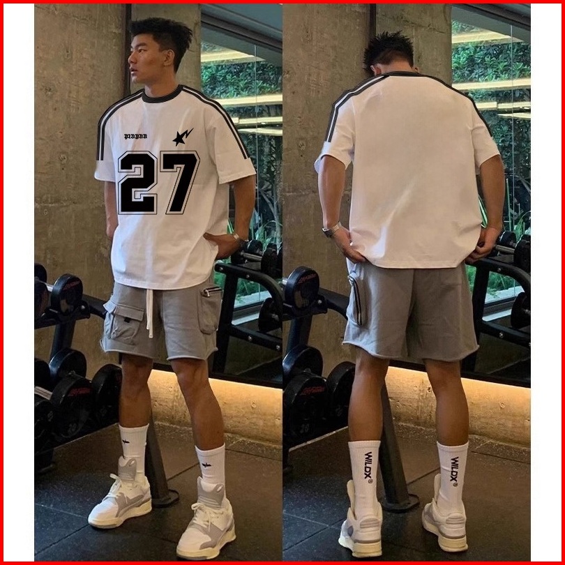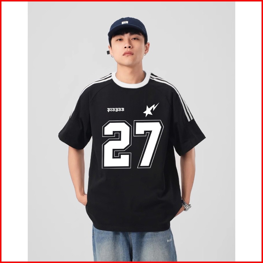 Fastfash Baju Oversize Pria Baju Distro Kaos Kemeja Lengan Pendek Tiga Garis Nomor 27 Pria Washed Hitam Cowok Asli 100 R