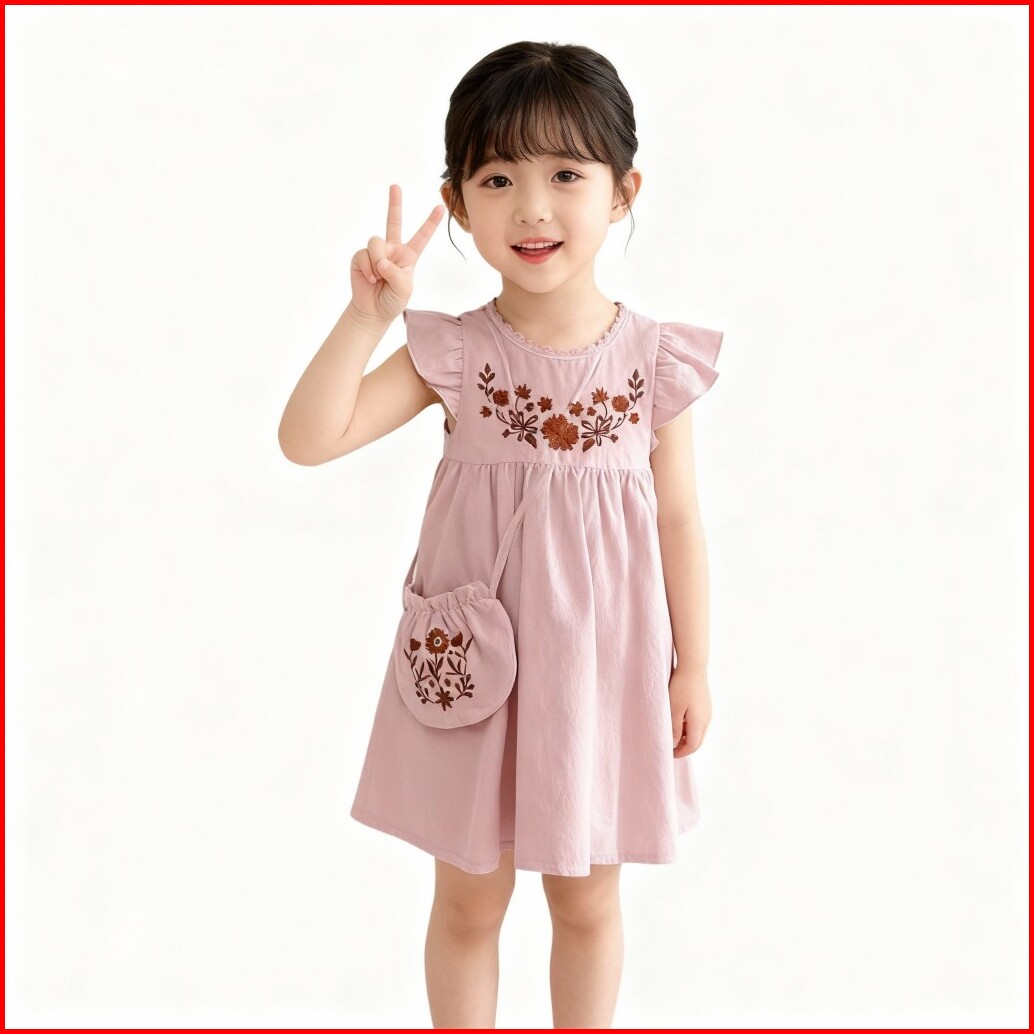 Baju Anak Perempuan Bordiran Bahan Katun Linen - Dress Lauren Anak Perempuan Umur 1-5 Tahun
