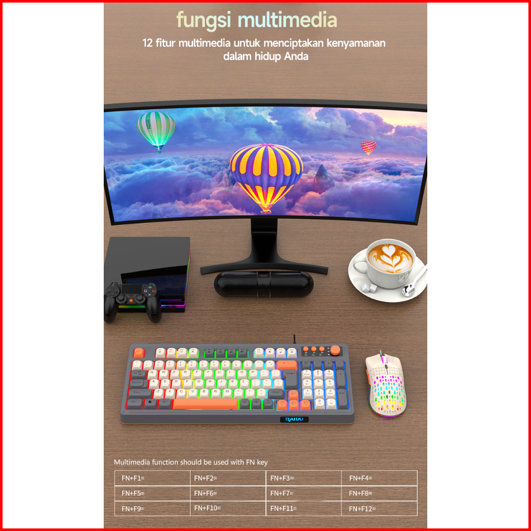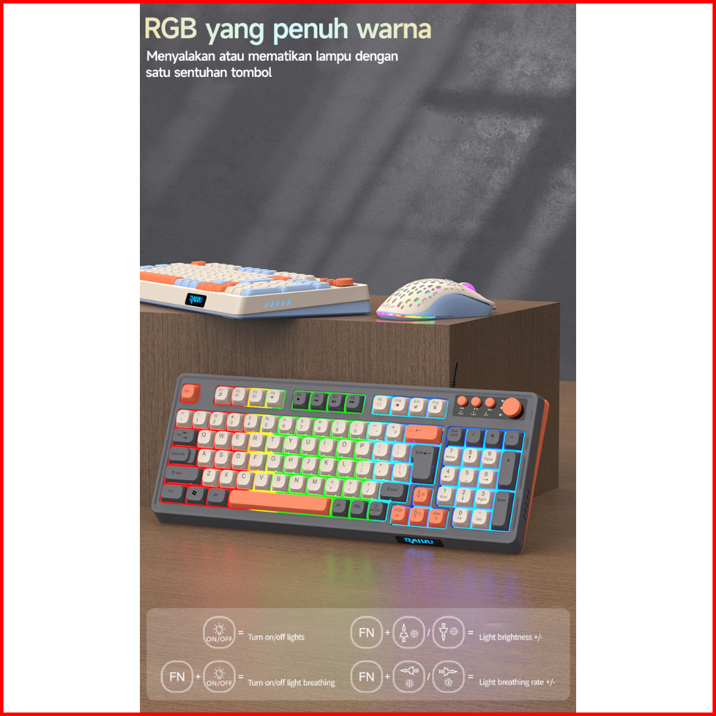 Ma Set Keyboard Gaming K98 E-sports Jerman Dengan Kabel Switch Coklat Senyap Sensasi Mekanis Dan Nirkabel.