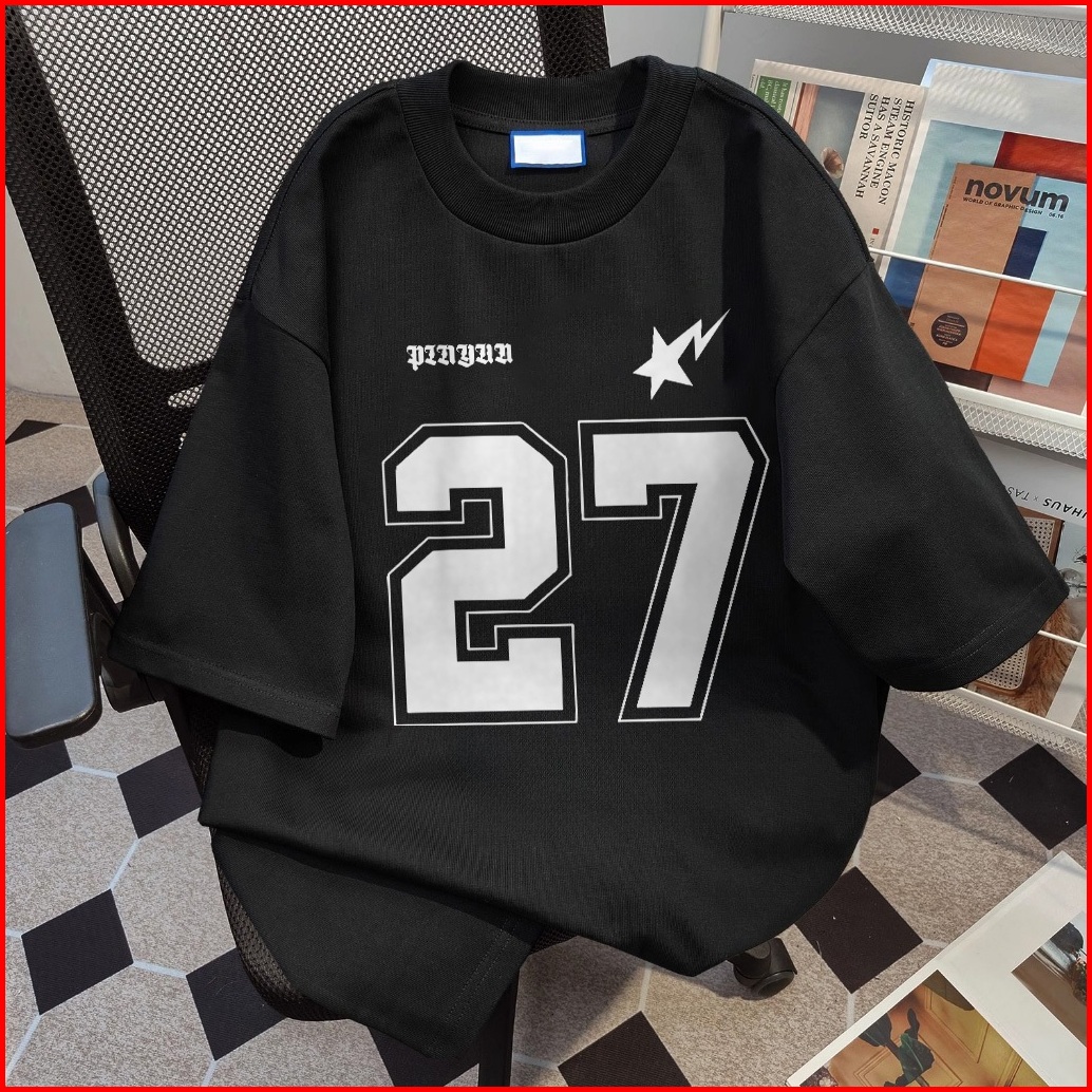 Fastfash Baju Oversize Pria Baju Distro Kaos Kemeja Putih Lengan Pendek Bermotif Angka 27 Pria Washed Hitam Cowok Asli 1