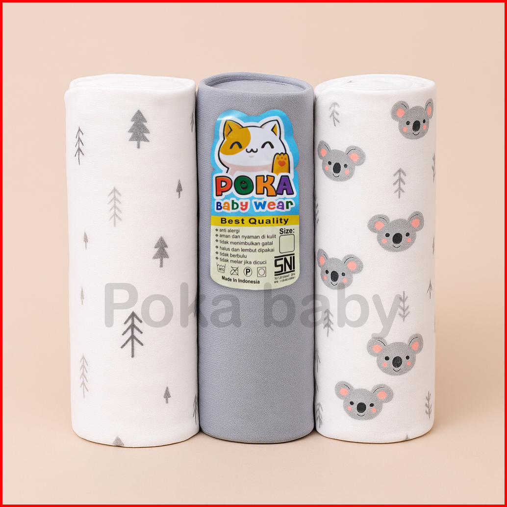 3pcs Bedong Bayi Serian Abu Poka Selimut Pernel 90x110cm Ak18