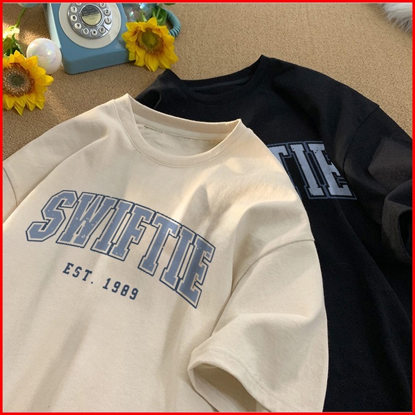 Fastfash Kaos Lengan Pendek Pakaian Pria Dan Wanita Oversize Vintage Cetakan Surat Sederhana Bergaya Netral - Baju Kaos