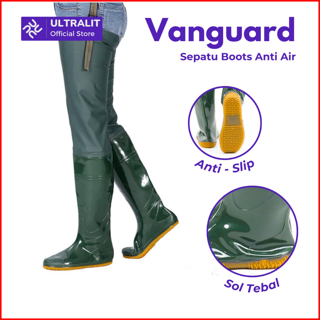 Ultralit Vanguard Sepatu Boots Panjang Anti Air Dewasa Tahan Lumpur Bertani Tali Adjustable Anti Slip