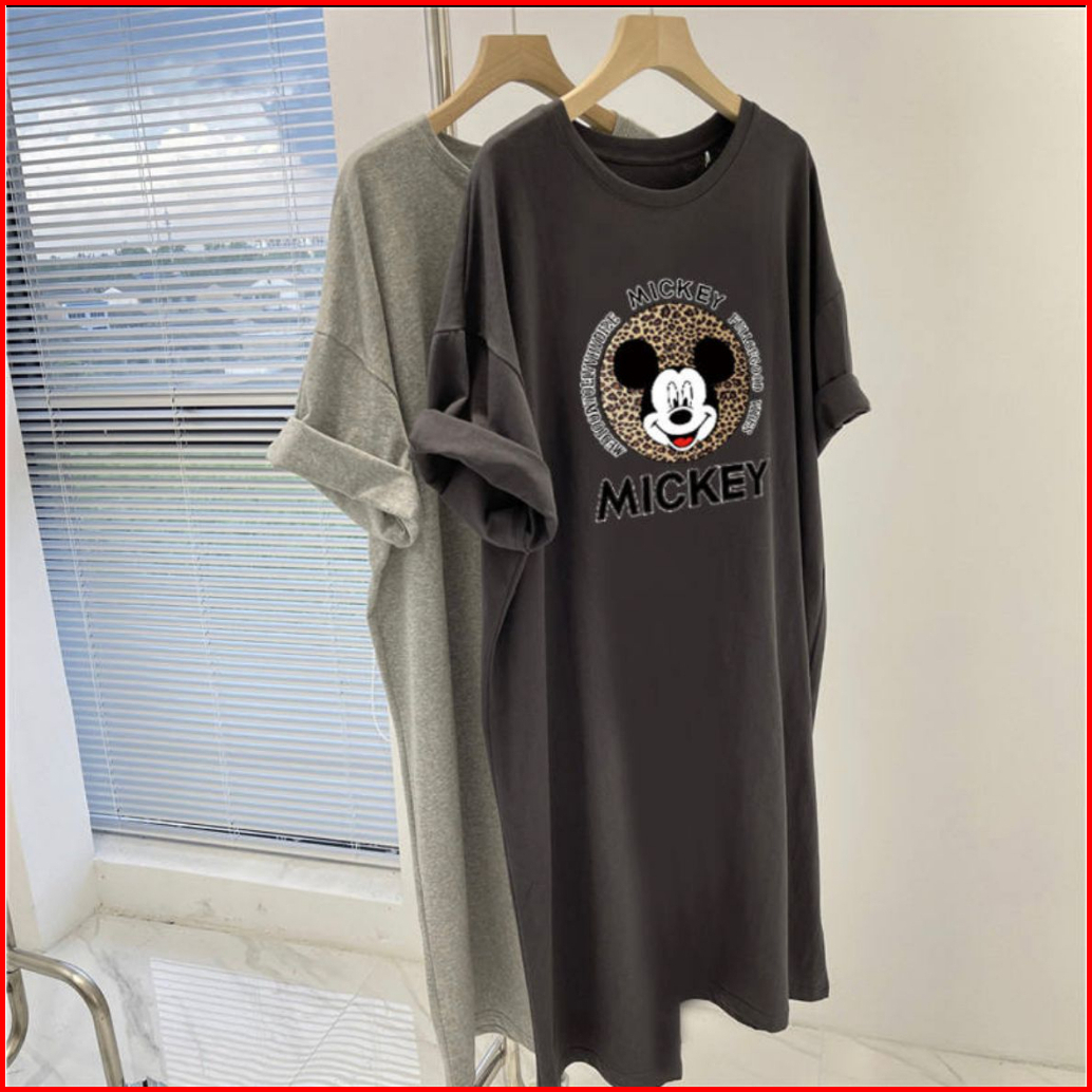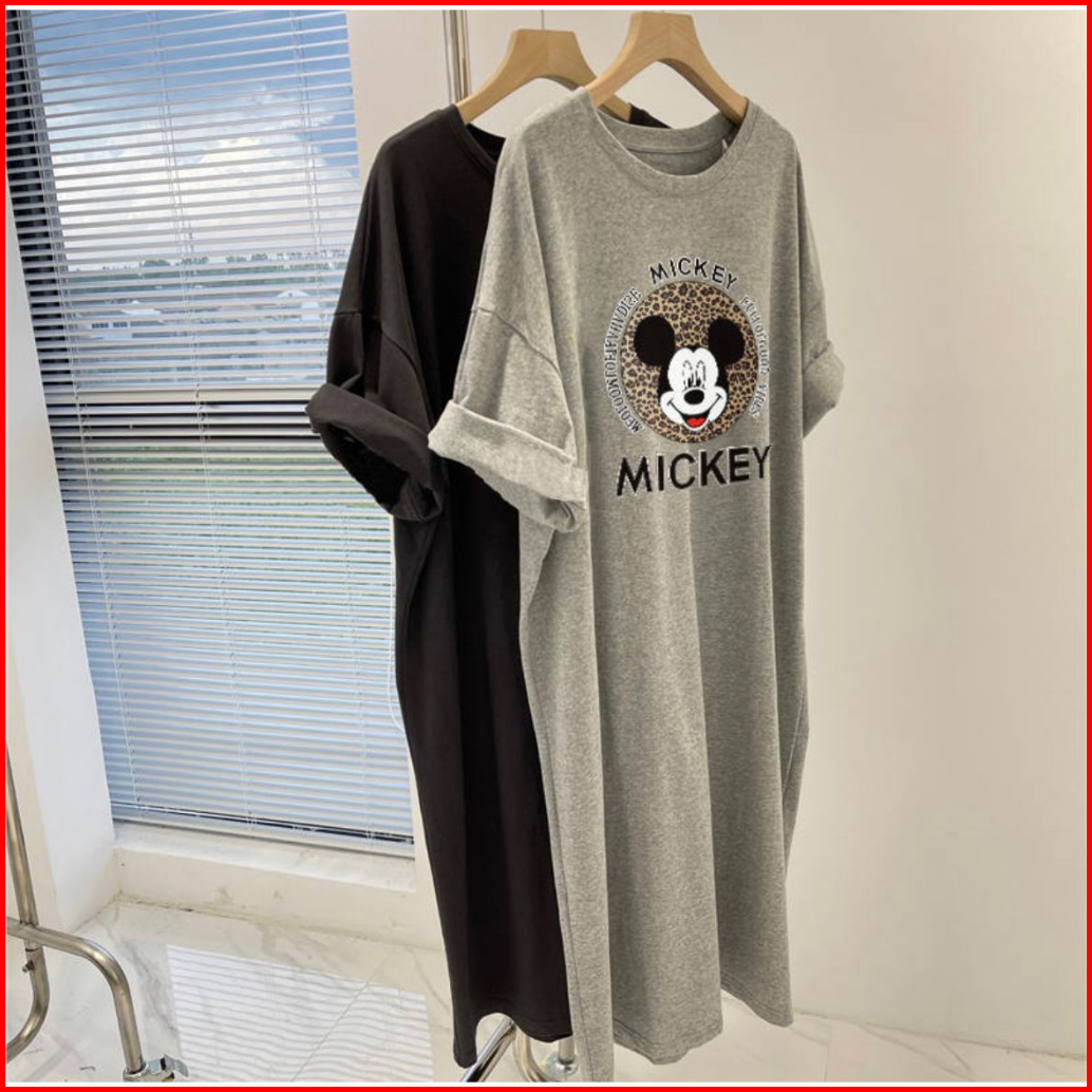 Long Dres Lengan Pendek Gambar Motif Mickey Long Dress Mini Dress Blouse Long Blouse Dress Wanita 2023