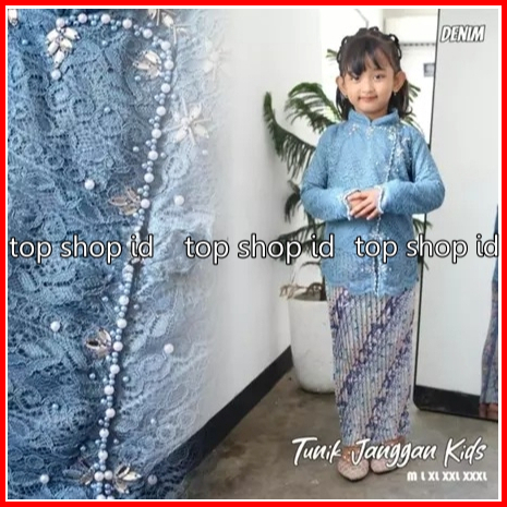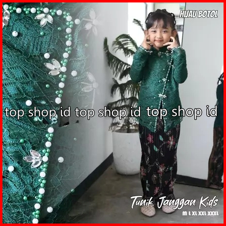 Stelan Dan Atasan Kebaya Janggan Anak Perempuan Full Payet Warna Mahogani Plisket Rok