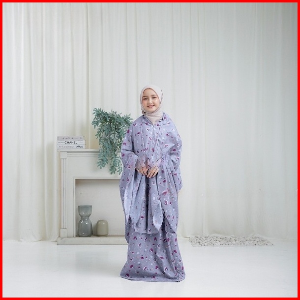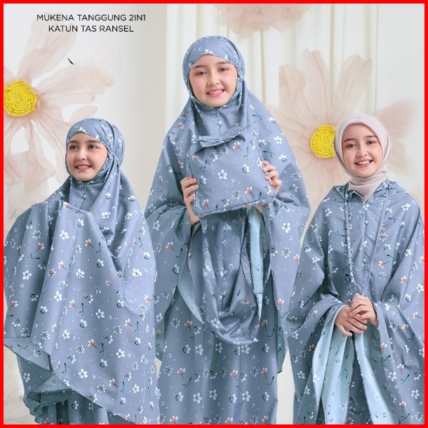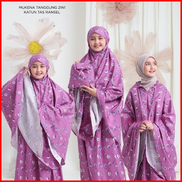 Mukena Anak Perempuan 2in1 Tas Ransel Katun Motif Bunga Premium