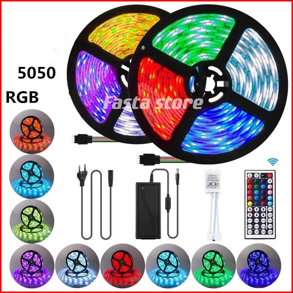 Lampu Led Strip 2835 3528 5050 5m 10m Rgb Set Warna Warni Ip44 Ac 220v Adaptor Remote