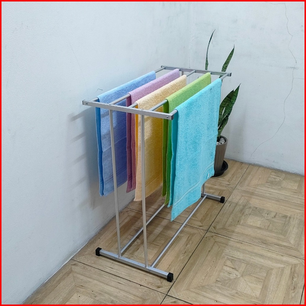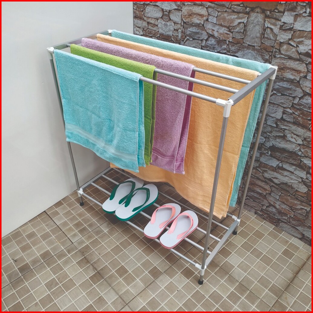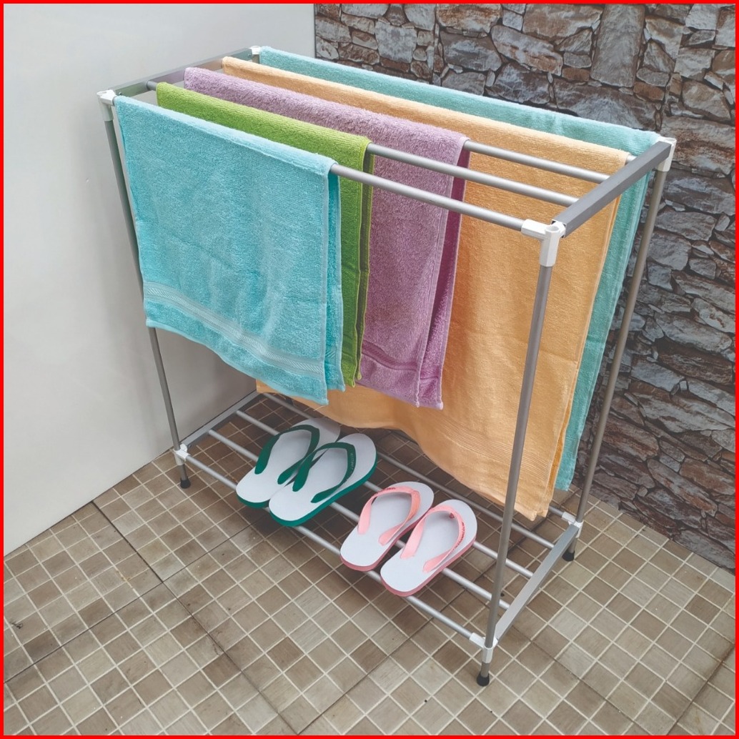 Jemuran Handuk Aluminium Rak Handuk Berdiri Knockdown 5 Handuk Tempat Sepatu Sandal
