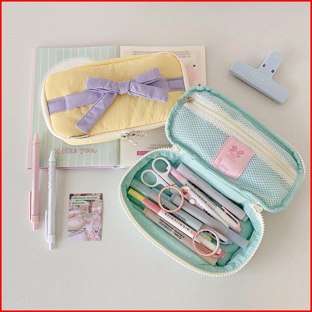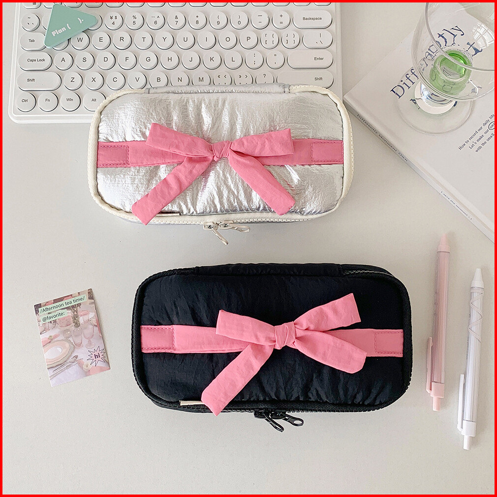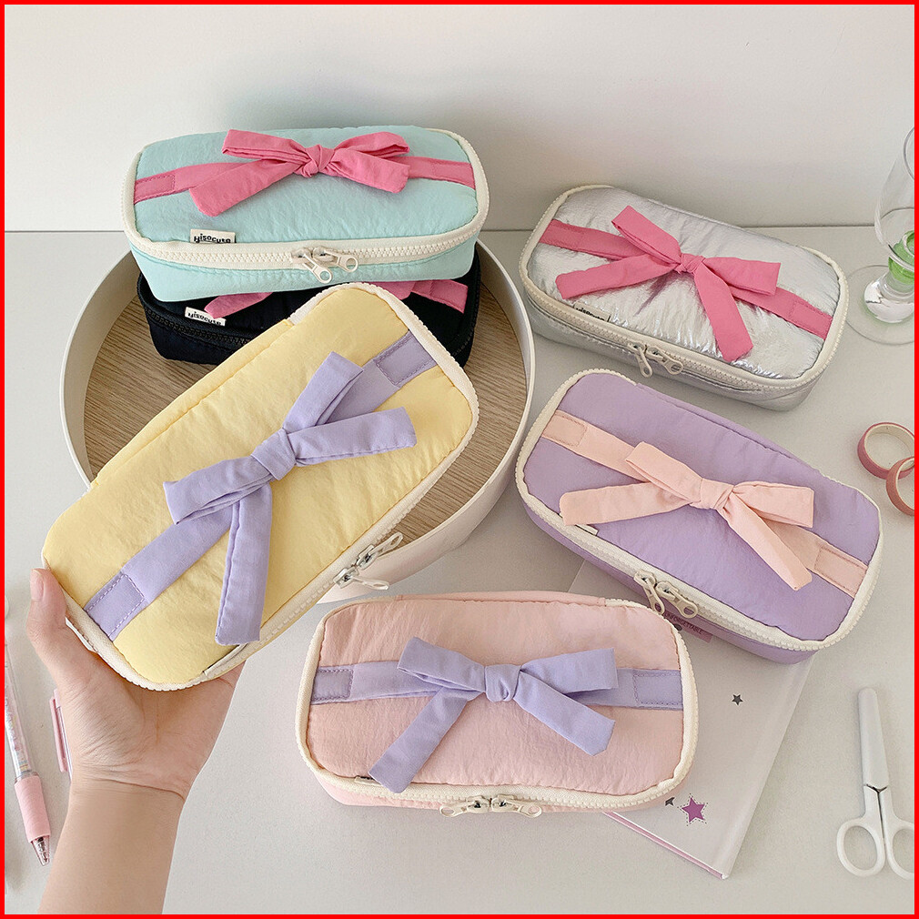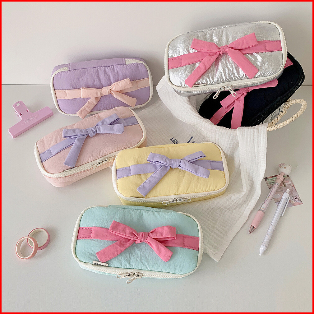 Shinsday Kotak Pensil Tempat Penyimpanan Serbaguna Pouch Makeup Travel Bag Organizer Pita Coquette Cute Pastel Aesthetic