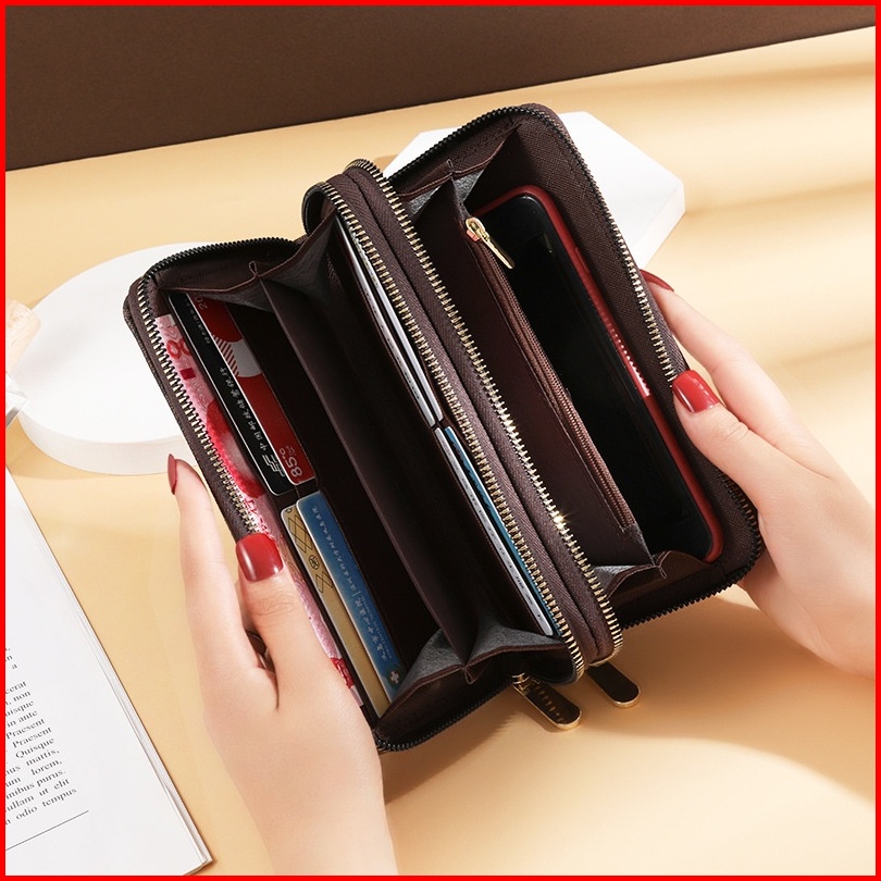 Dompet Panjang Wanita Premium 2 Resleting Kulit Coklat Radise Wa314b7 Pesta Korea Kartu Batam