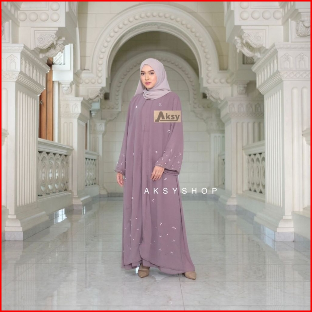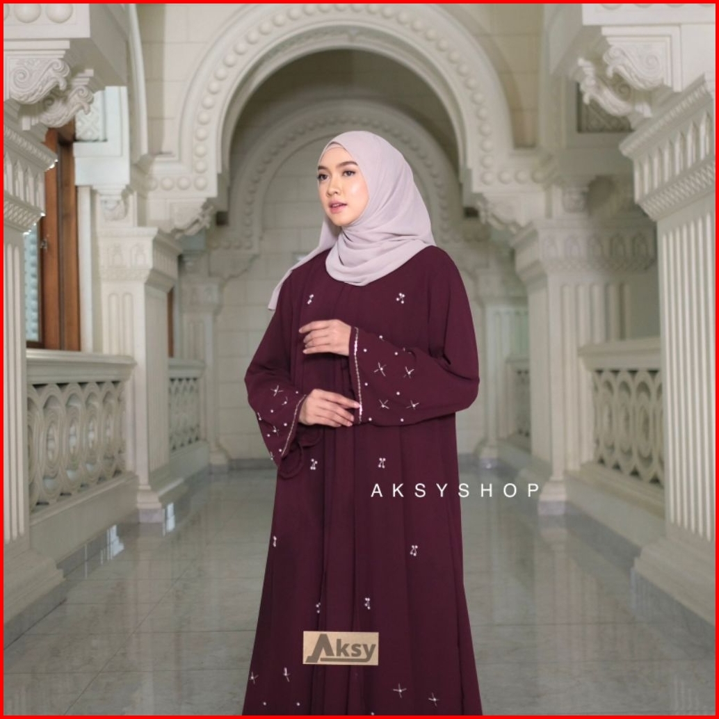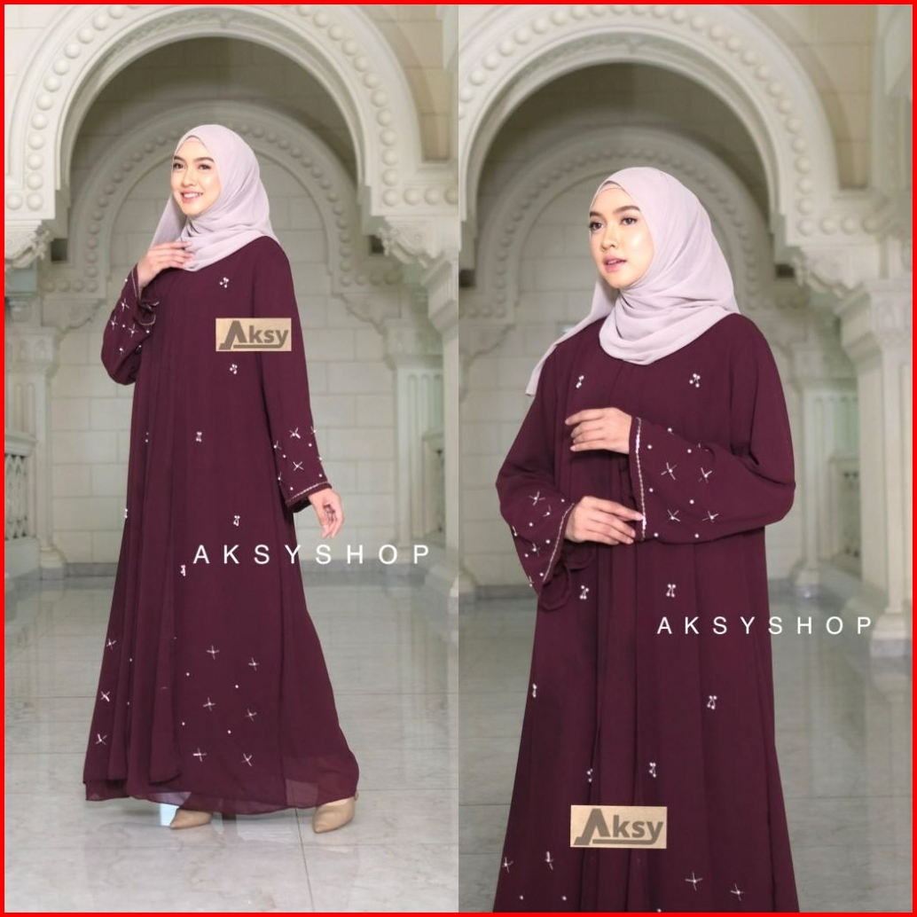Tasya Abaya Dress Ceruty Babydoll Full Furing Abaya Kekinian Aplikasi Mute Mewah Pakaian Wanita Muslimah