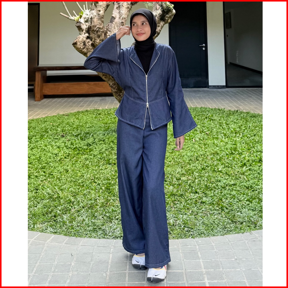 Beatrix Apparel Nona Denim Oneset - Oneset Denim - Oneset Jeans - Zipper Oneset - Zipper Oneset Denim - Set Denim - Set