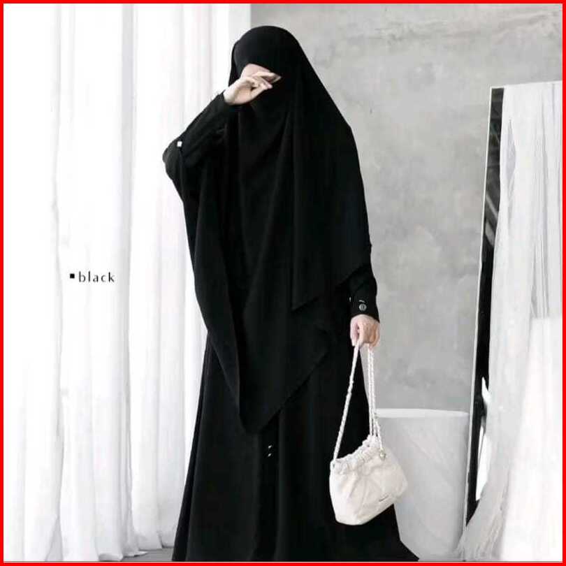 Gamis Umroh Haji Abaya Hitam Ayra Muslimah Terlaris Set Khimar Simpel Mewah M L Xl Xxl Crinkel