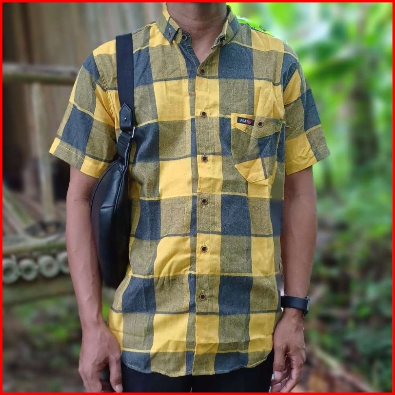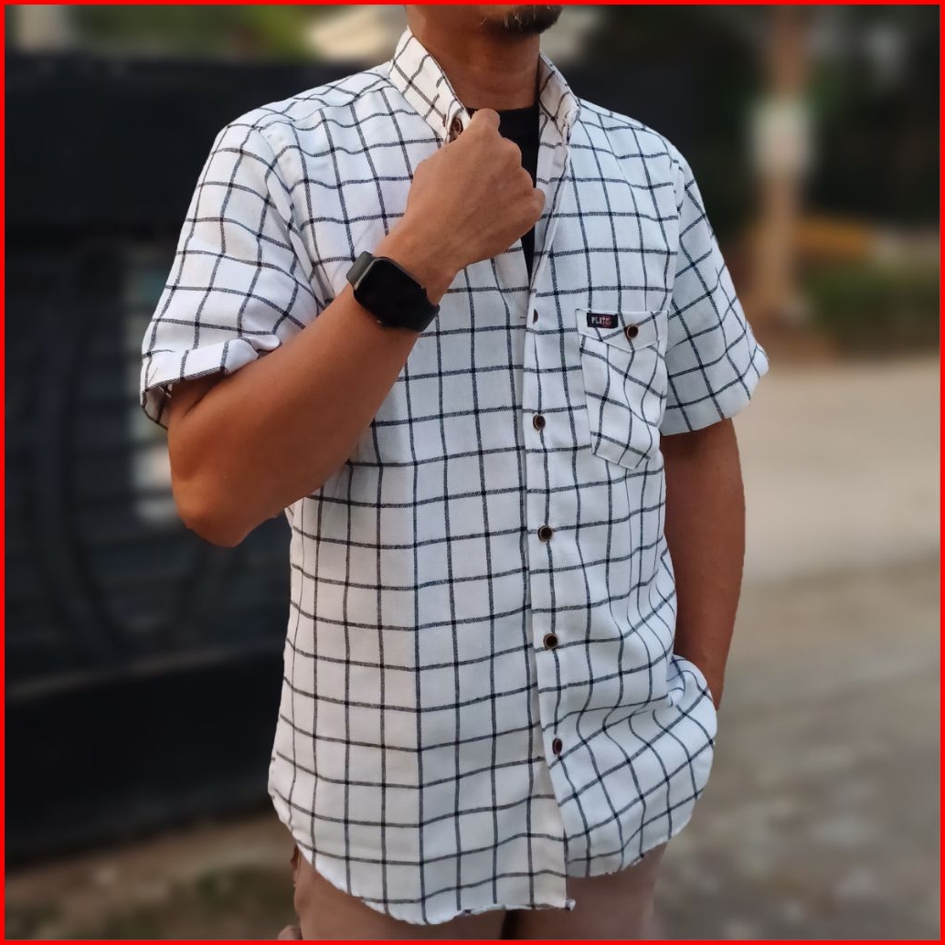 Kemeja Flanel Pria Wanita Lengan Pendek Kotak Kotak Premium High Quality Terlaris Motif Baru