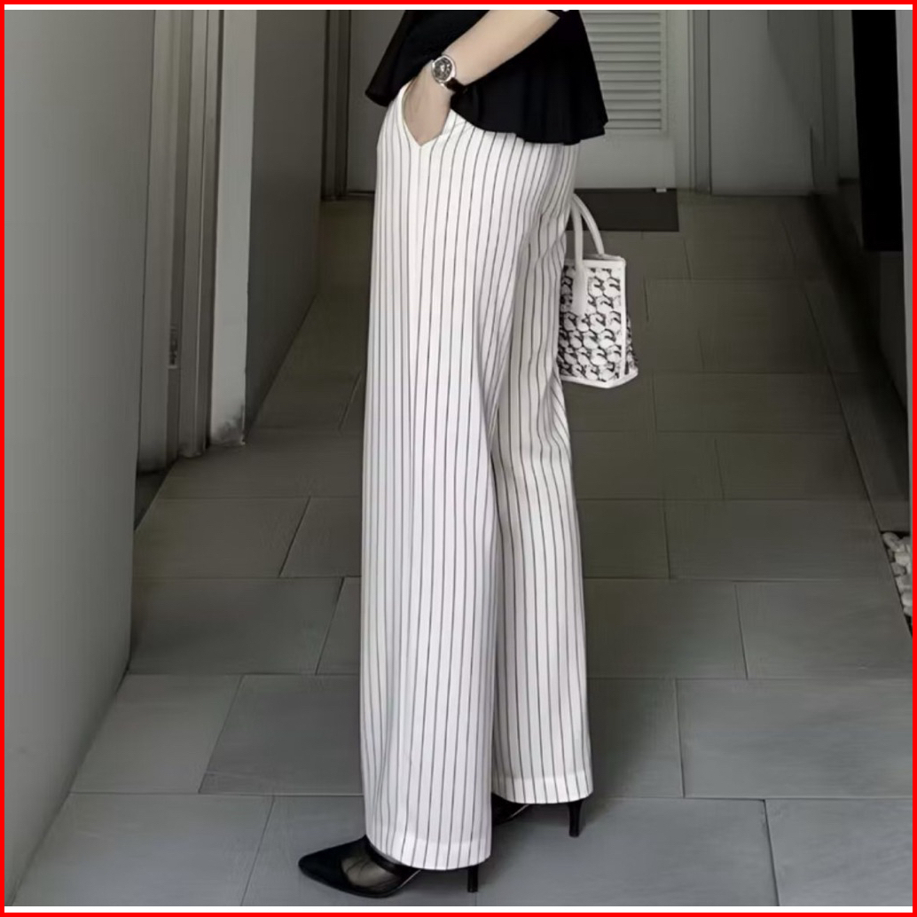 Everyday Pants - Stripe Pants Bangkok - Celana Panjang Wanita Baggy Kantor Kuliah Motif Garis Kulot Pinstripe - Celana F