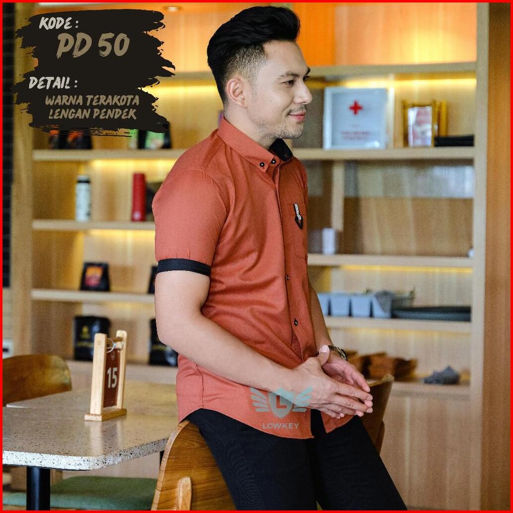 Kemeja Pria Slimfit Lowkey Premium Pd 50 Teracota Hem Atasan Kemeja Baju Laki-laki Cowok Slimfit Kemeja Pria Pendek Keme