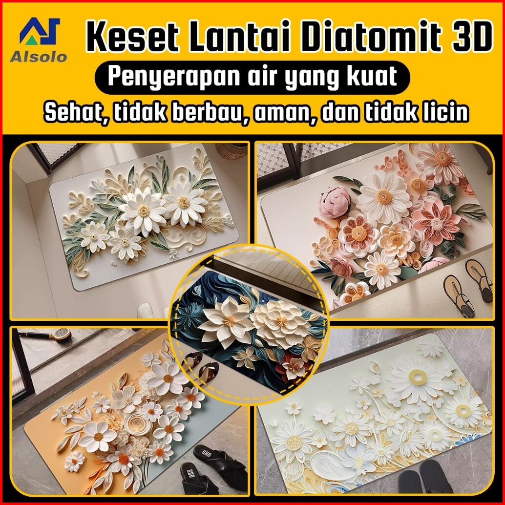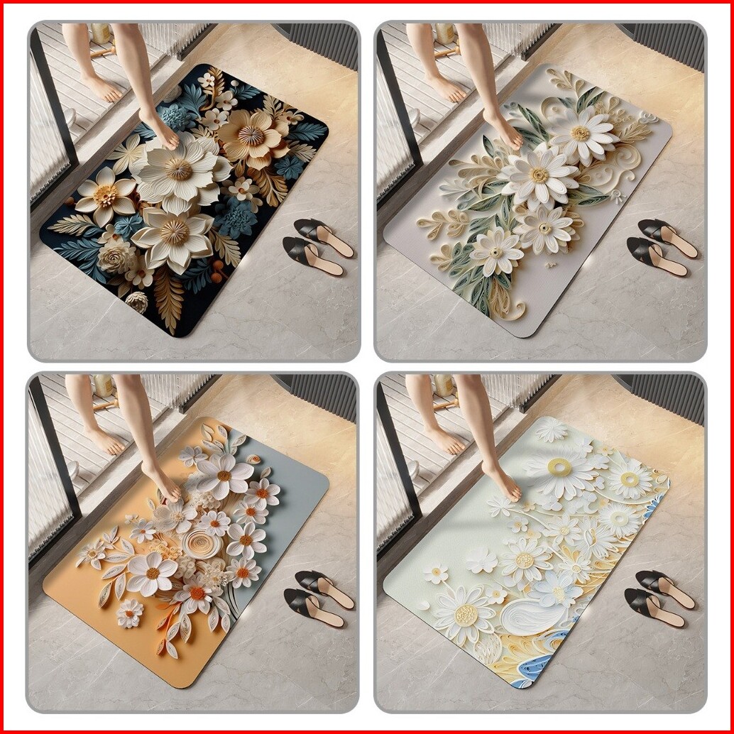 Kamar Mandi Keset Lantai Menyerap Air 3d Motif Bunga Keset Kaki Kamar Mandi Anti Slip Tidak Berbau Menyerap Air