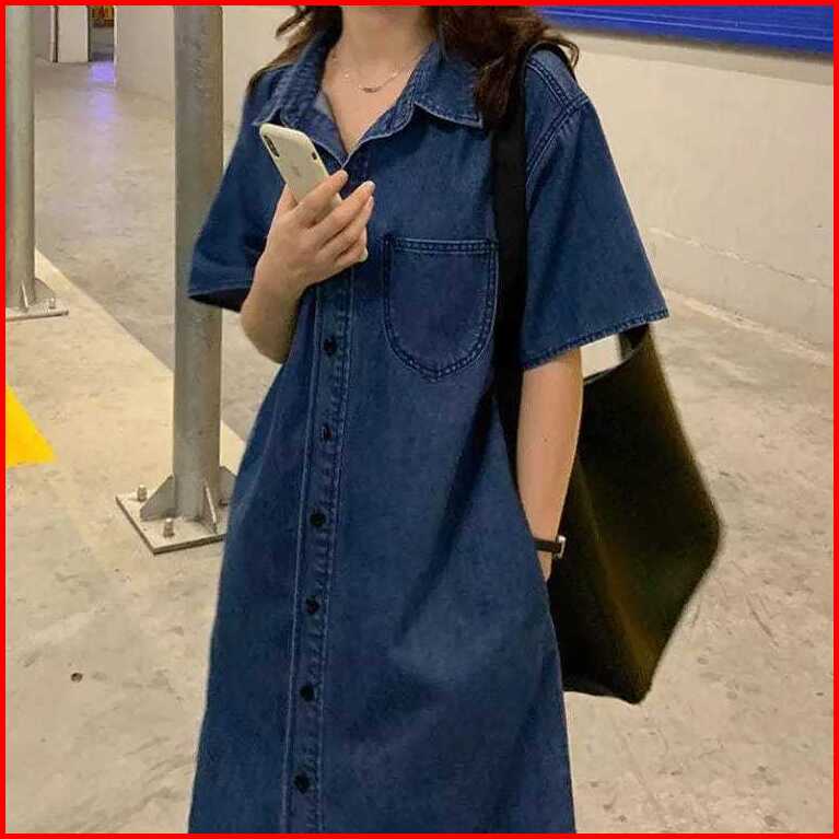 Sandra C Dress Terusan Denim Oversized Korean Minimalis