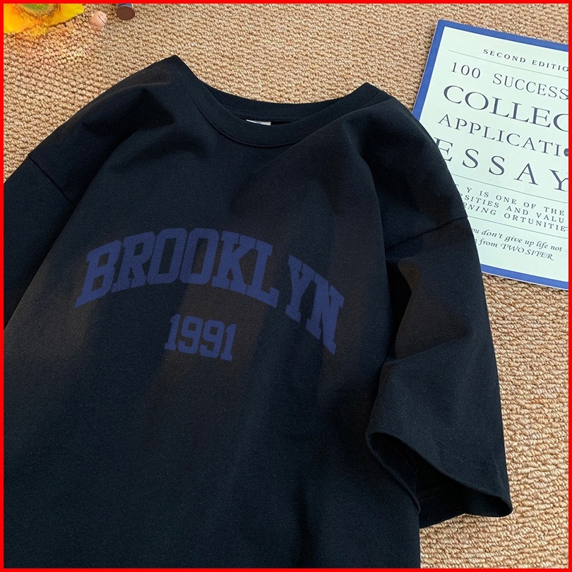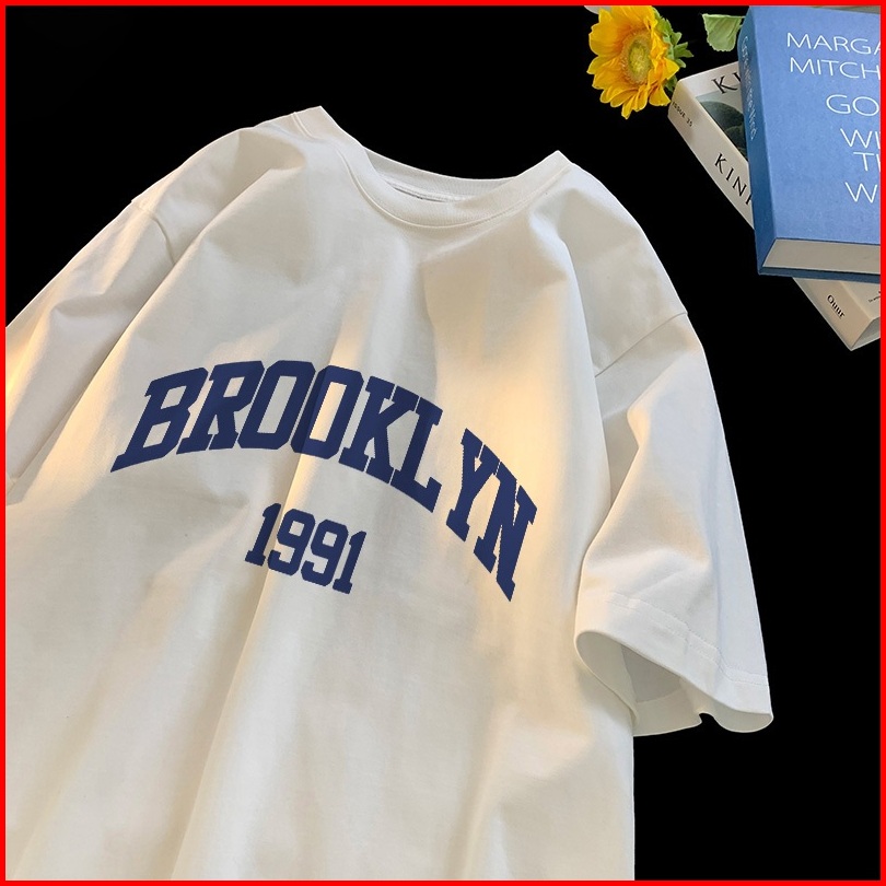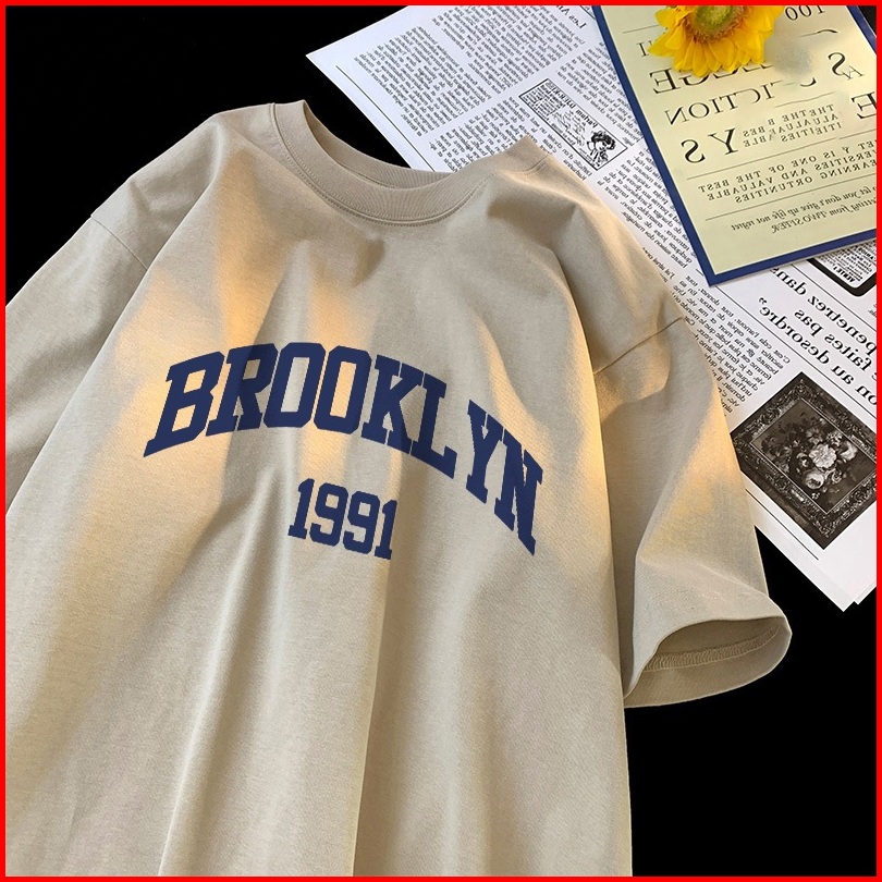 Fastfash Kaos Lengan Pendek Pakaian Pria Dan Wanita Oversize Vintage Brookl Yn 1991 Bergaya Netral - Baju Kaos Khaki Cow