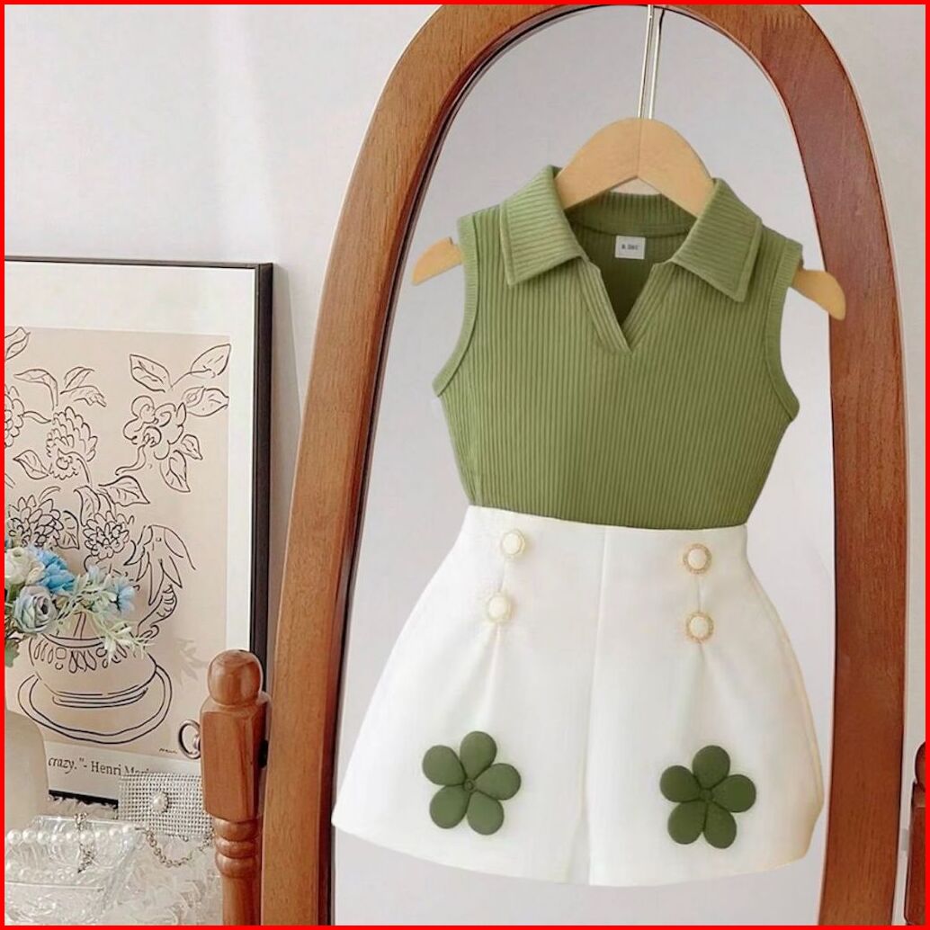 Aline Kids Dress Anak Perempuan Hijau Dengan Rok Putih