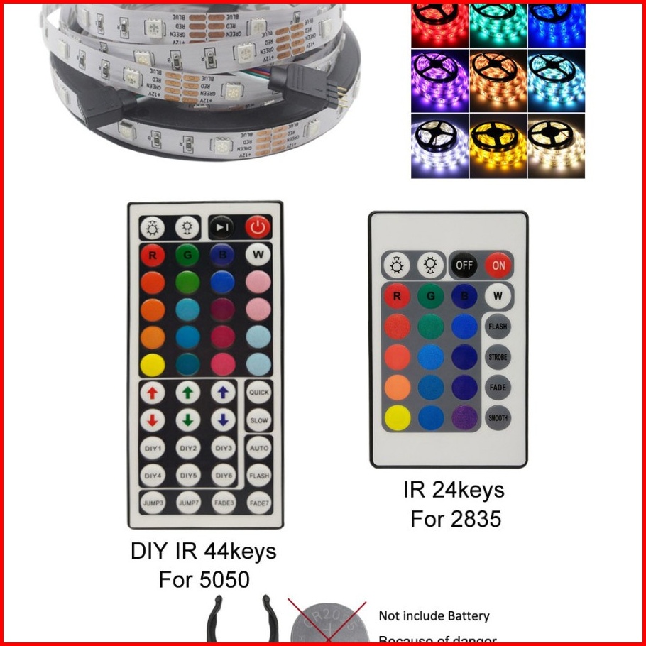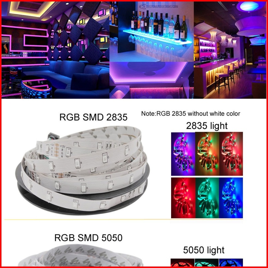 Timimall Lampu Led Strip Rgb Warna Warni 2835 5050 Komplit Set Adaptor Remote Waterproof