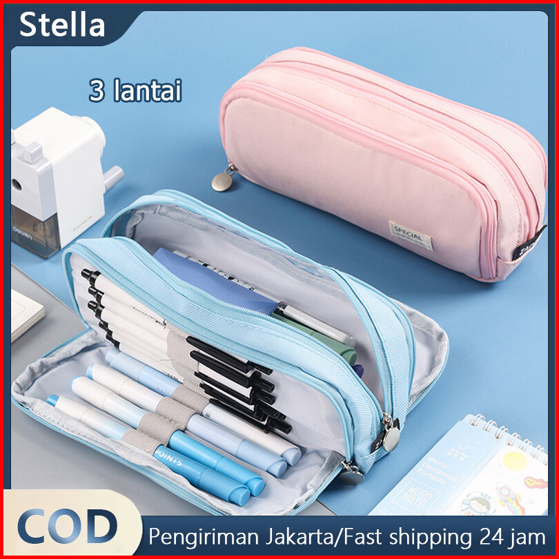 Kotak Pensil Large Capacity 3 Compartment Pouch Pen Bag Double Side Opening Tas Tempat Pensil Organizer Alat Tulis Siswa