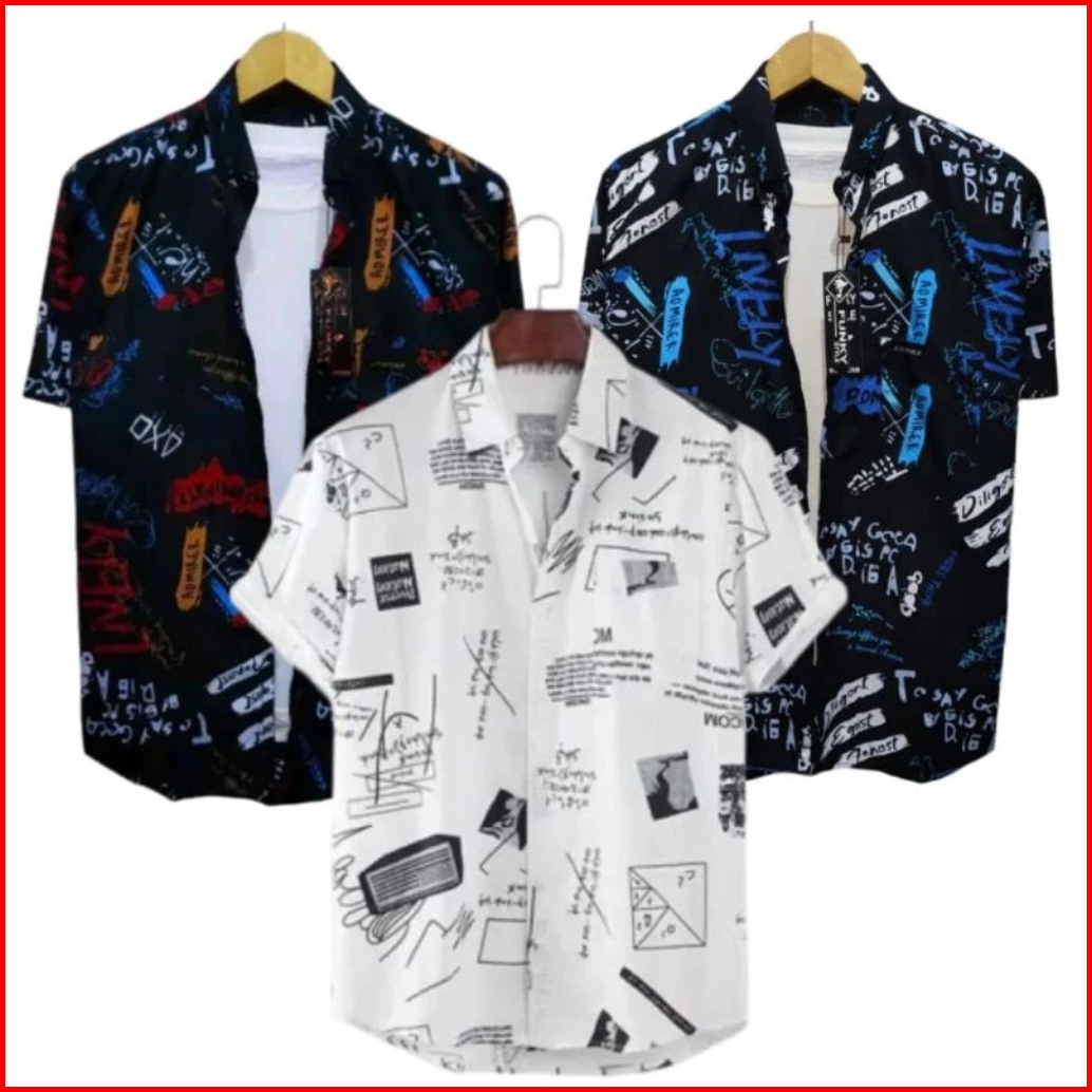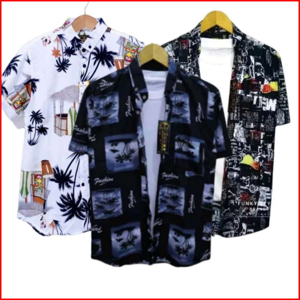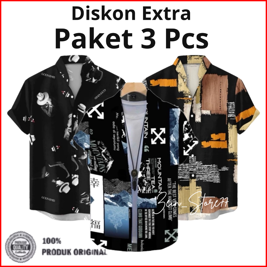 Paket 3 Pcs Kemeja Pria Motif Pantai Lengan Pendek Hem Katun Premium Original Distro Pakaian Surfing Cowo Keren Baju Ata