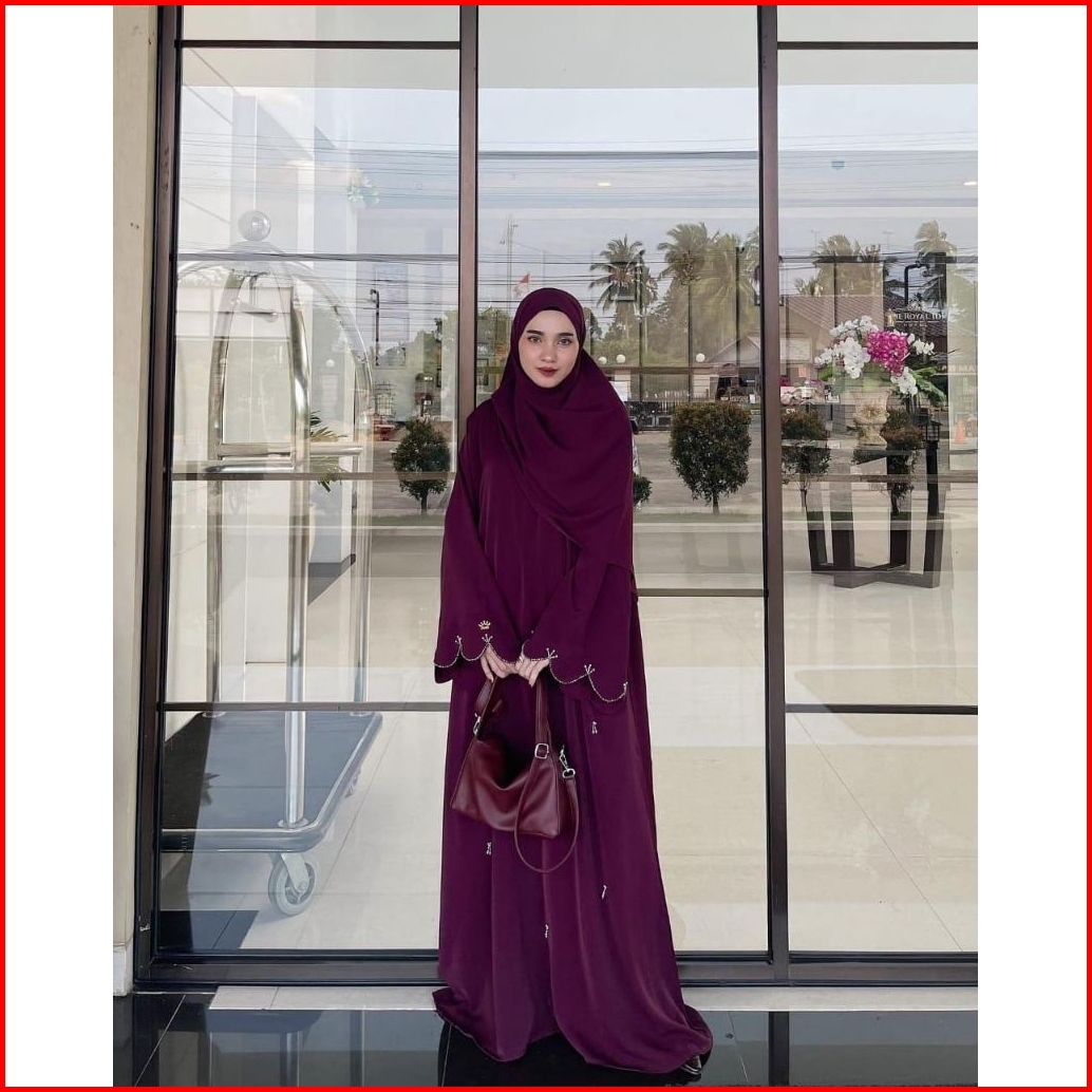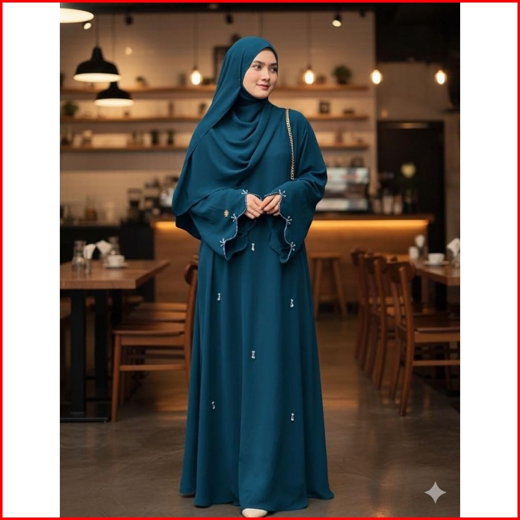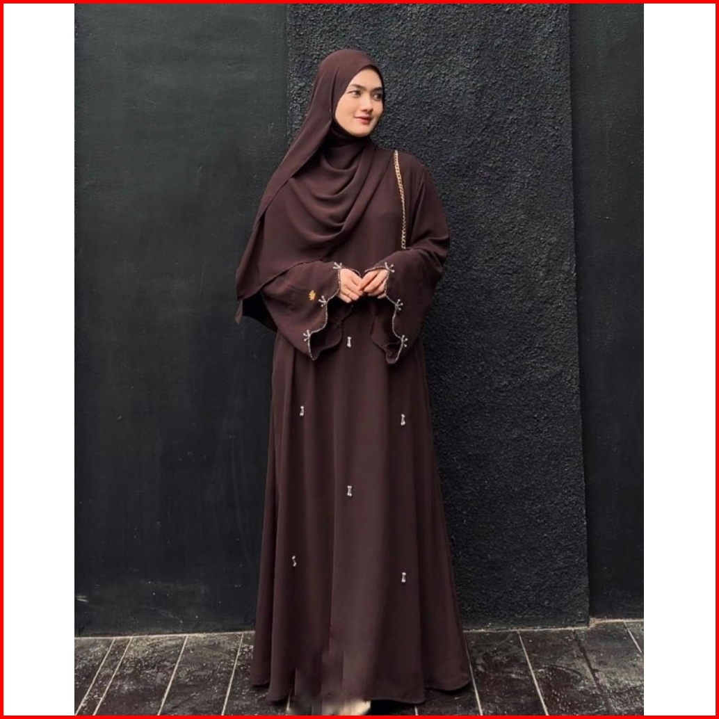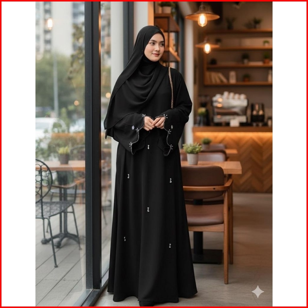Yasmen Abaya Dress Bahan Marbela Anti Uv Aplikasi Payet Mutiara Abaya Umroh Simpel Mewah Elegan