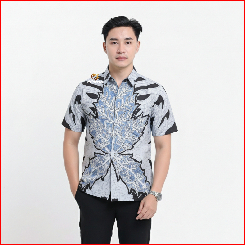 Kemeja Batik Pria Baju Lengan Pendek Slimfit Lapis Furing Batik Christo Pd963 Bahan Katun Premium Elegan Motif Formal