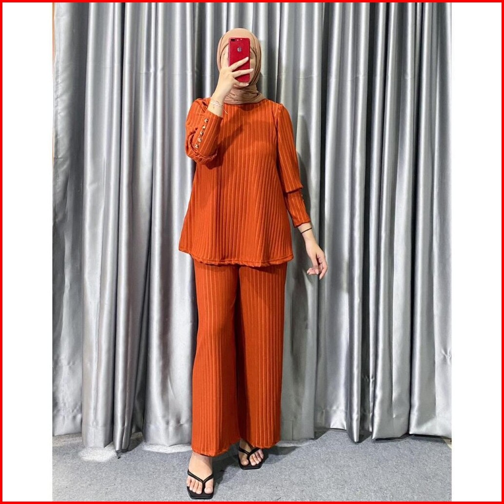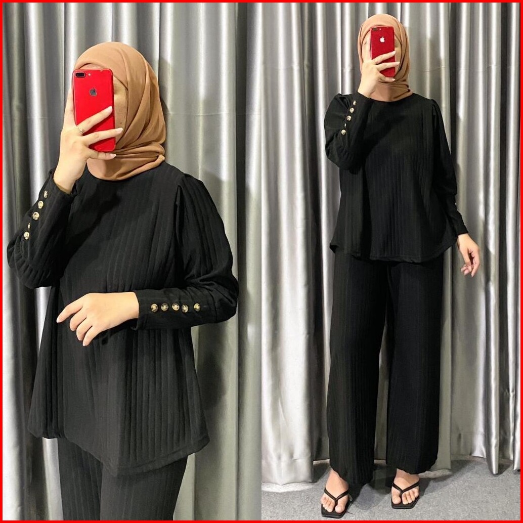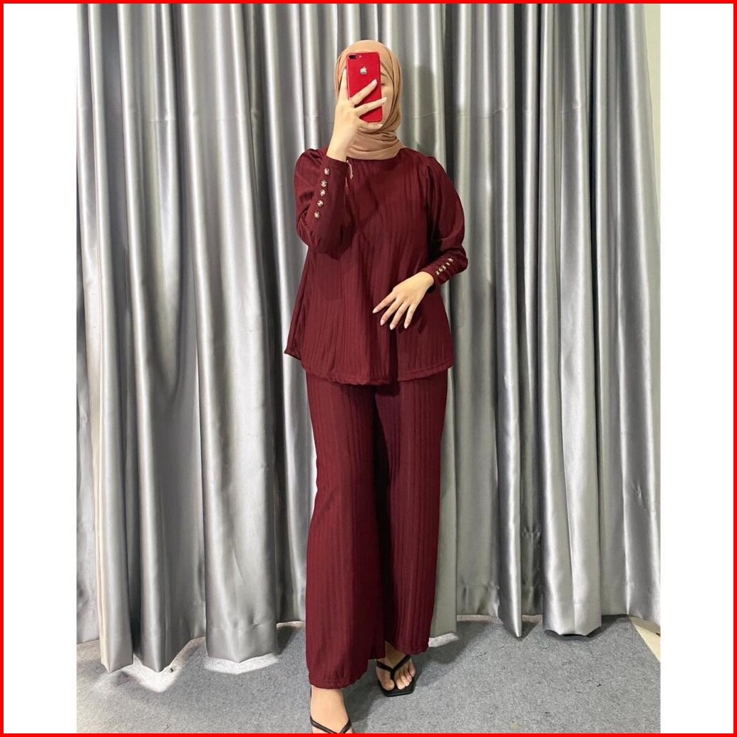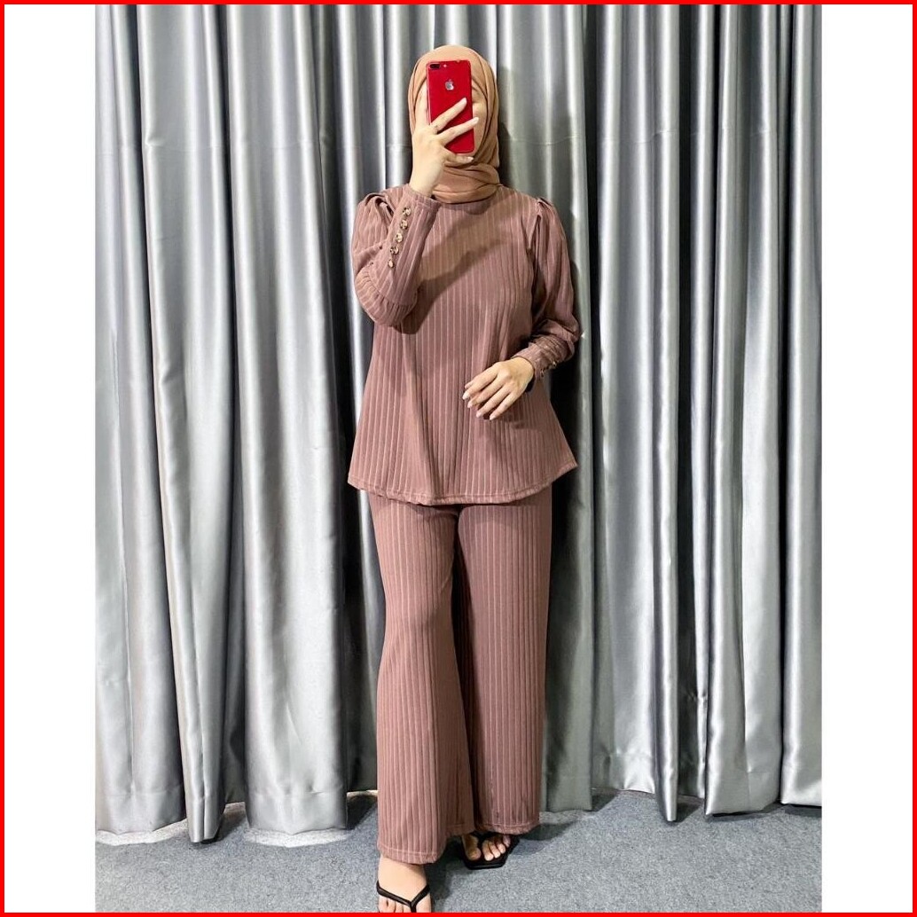 One Set Hornet Knit Setelan Wanita Lengan Kancing Terbaru Kekinian Trand 2025