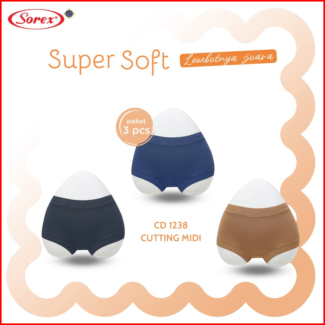 1 Paket Isi 3 Pcs Cd Sorex 1238 Super Soft Celana Dalam Wanita Midi Katun