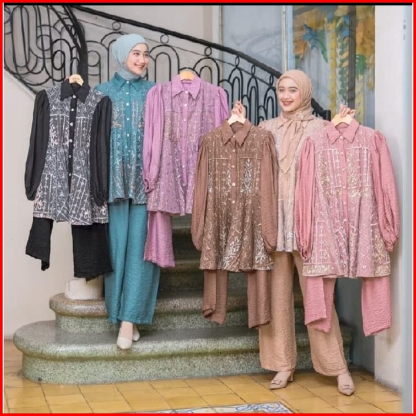 Qiara Oneset Terbaru Setelan Brukat Wanita Trendy Oneset Wanita Modern Terlaris