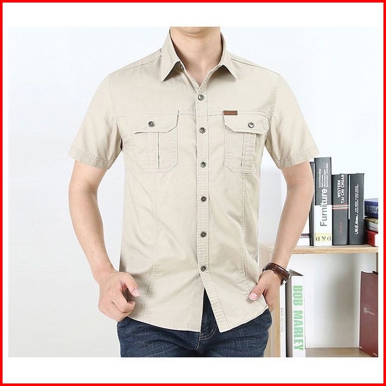 Goodteory Kemeja Outdoor Pria Lengan Pendek Kemeja Lapangan Tactical Kemeja Pria Basic Polos Kemeja Kantoran Kemeja Cass