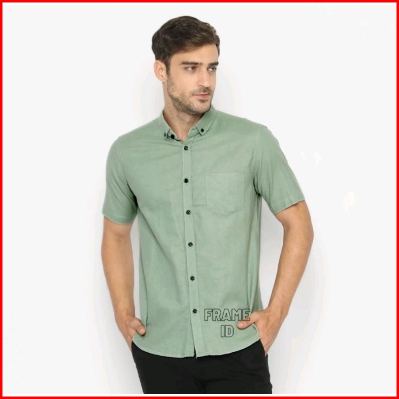 Kemeja Pendek Pria Katun Oxford Slimfit M-3xl