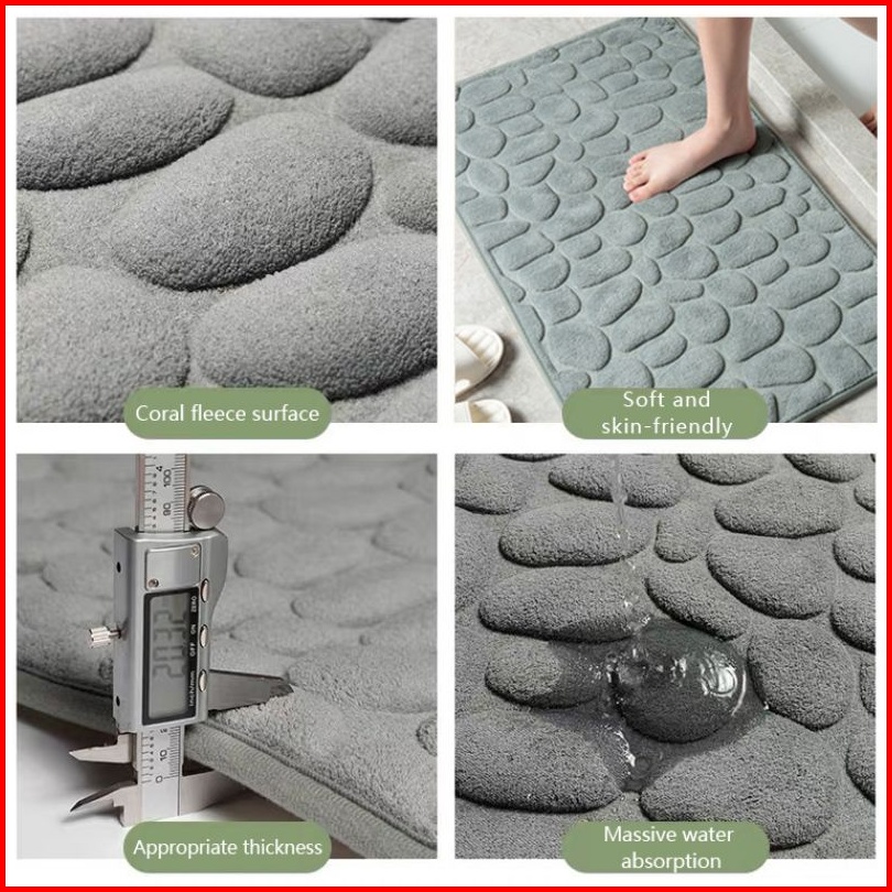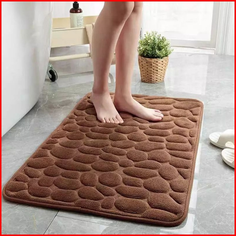 Keset Kaki Anti Slip Motif Batu Bahan Memory Foam Menyerap 60cm X 40cm