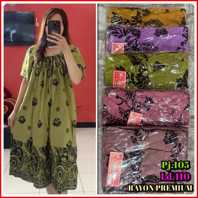 Daster Fuji Rayon Super Dada Serut Motif Bunga Batik Adem Dress Tidur Wanita Busui Ld 110 Panjang Bawah 105 Lembut Santa