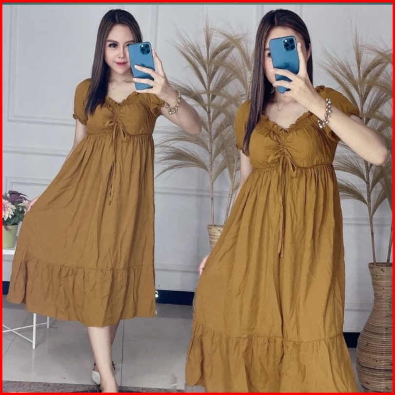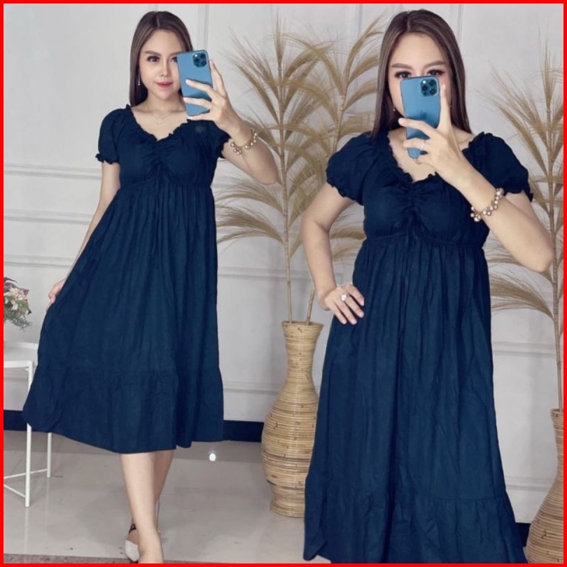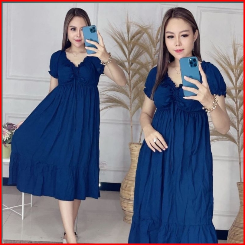 Daster Serut Dada Terbaru Busui Bumil Dress Elsa Serut Dada Rayon Ld 110-120