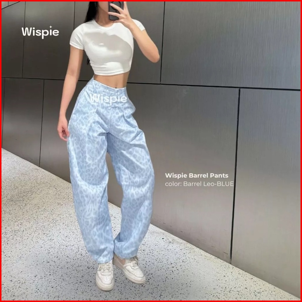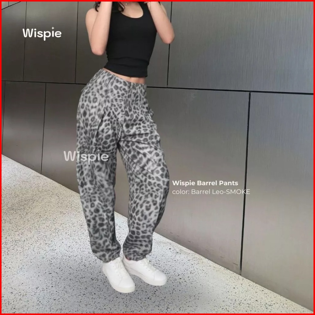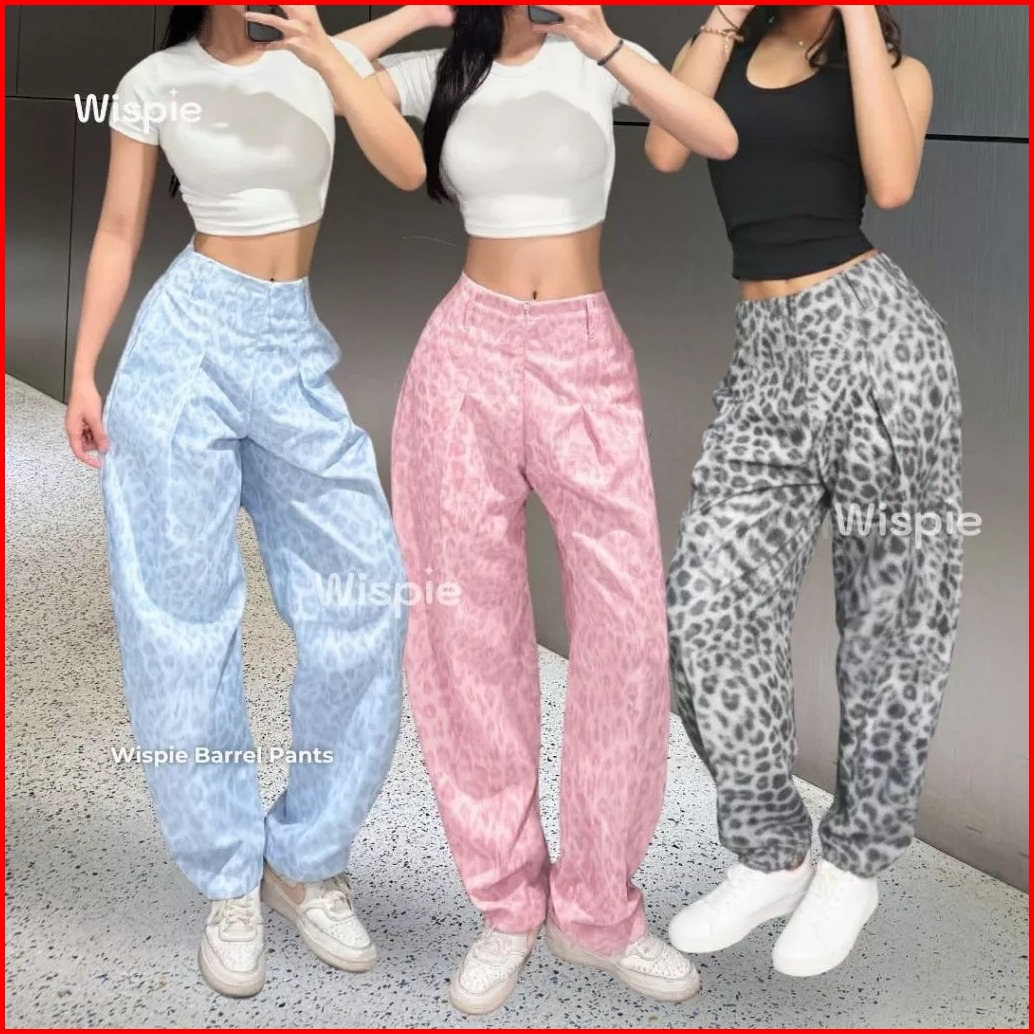 Celana Viral Wispie Barrel Pants Celana High Waist Barel Wanita Leopard Pink Biru Motif