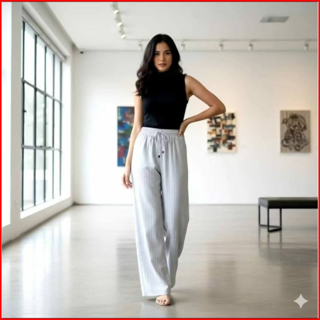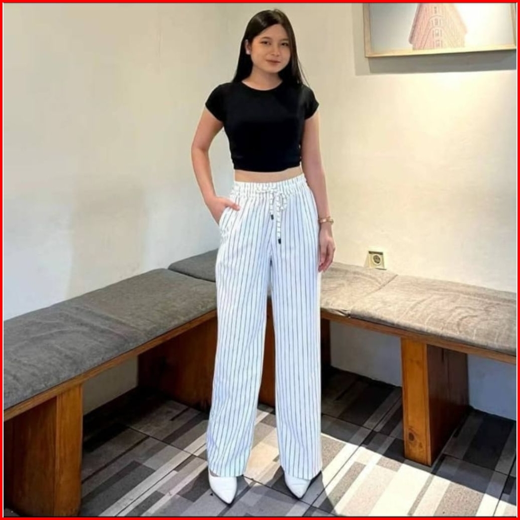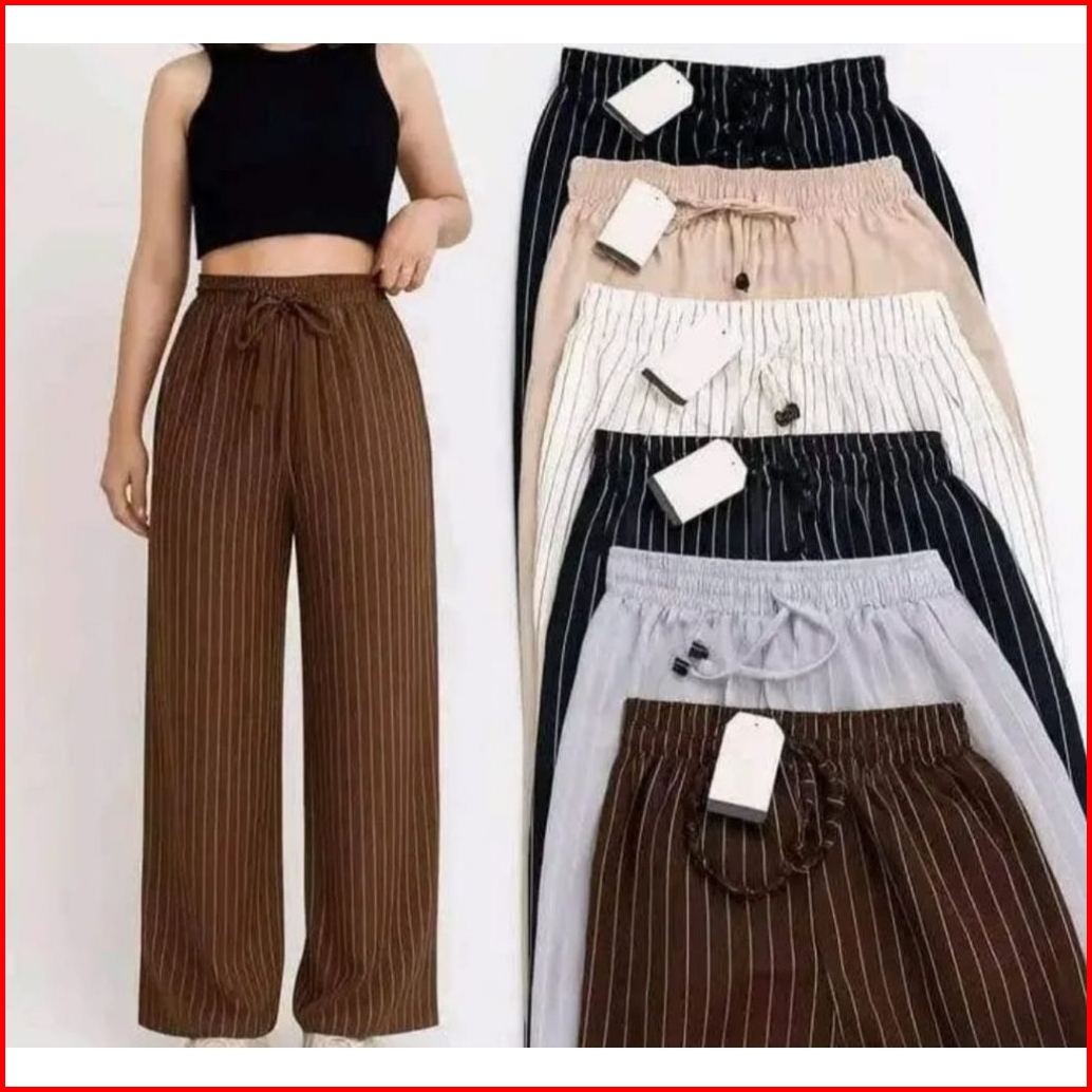 Everyday Strip Pants Bangkok Celana Panjang Wanita Baggy Celana Kuliah Celana Kantor Motif Garis