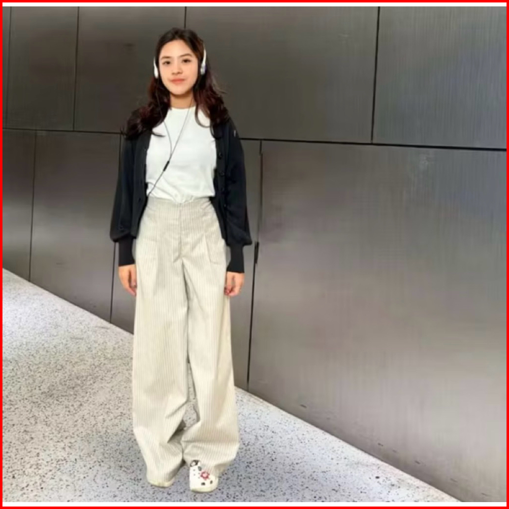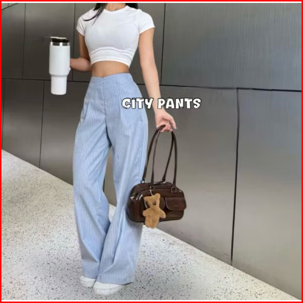 City Pants - Nurasy Premium Celana Tidur Panjang Wanita Kantor Kuliah Motif Garis Kulot Pinstripe