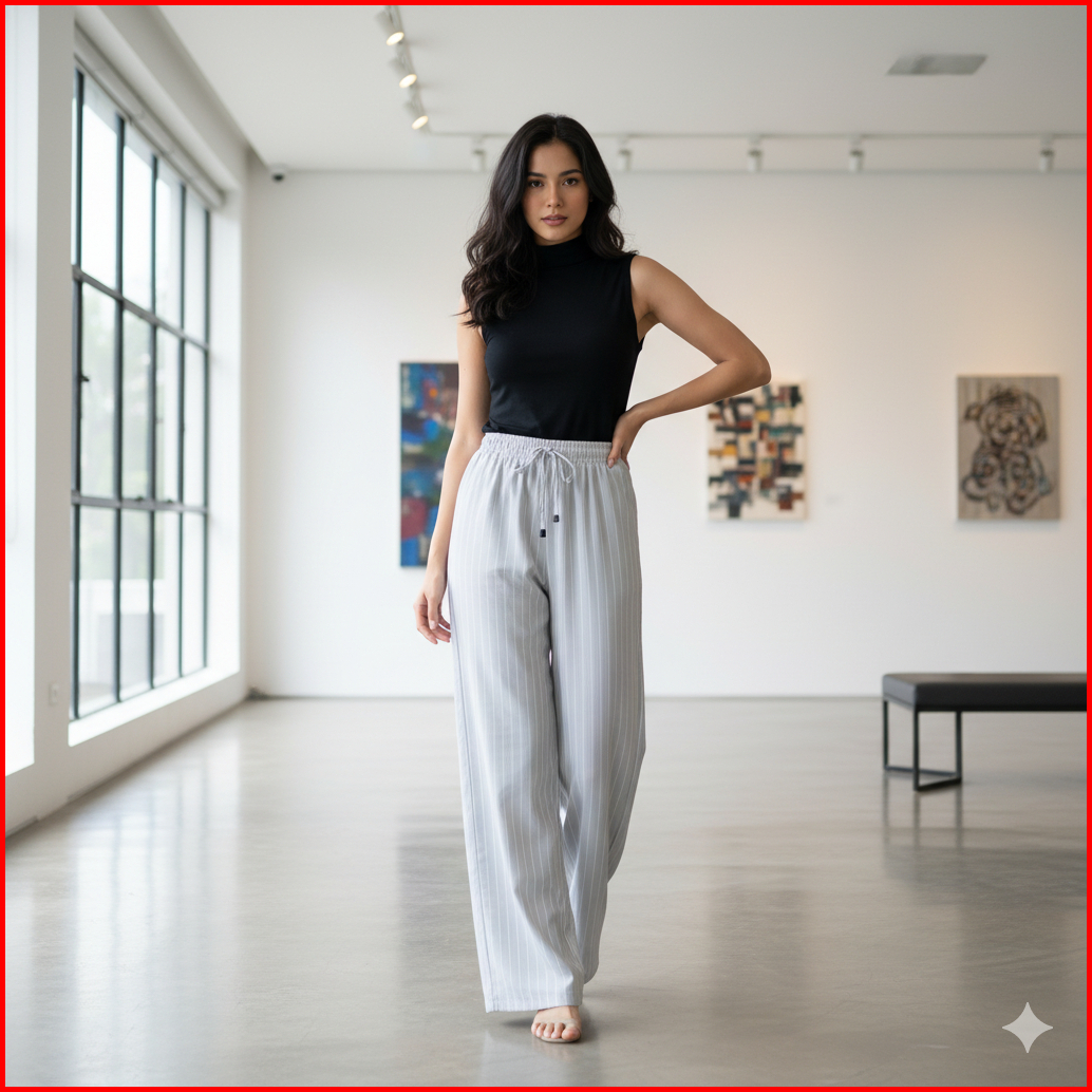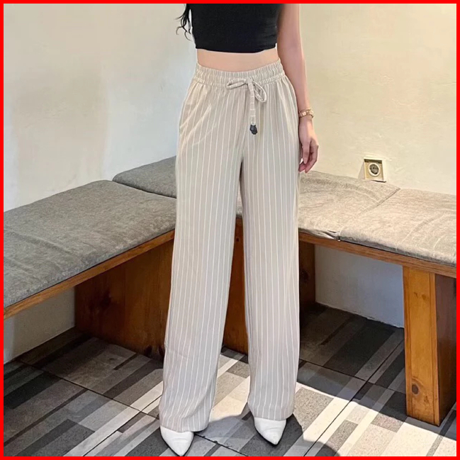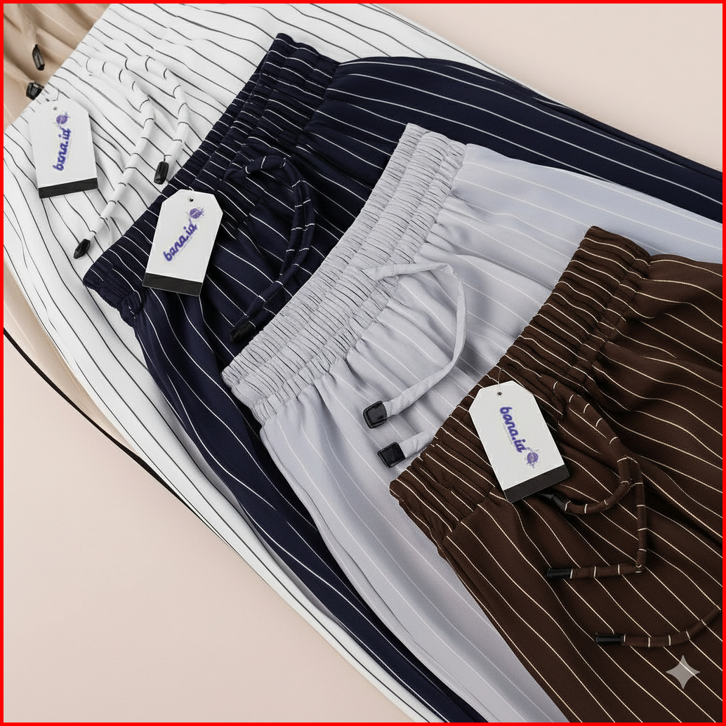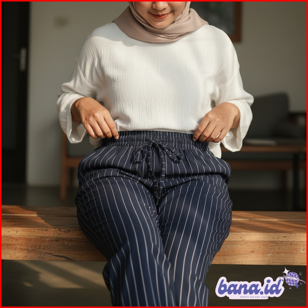 Everyday Pants - Stripe Pants Bangkok - Celana Panjang Wanita Baggy Kantor Kuliah Motif Garis Kulot Pinstripe - Celana F